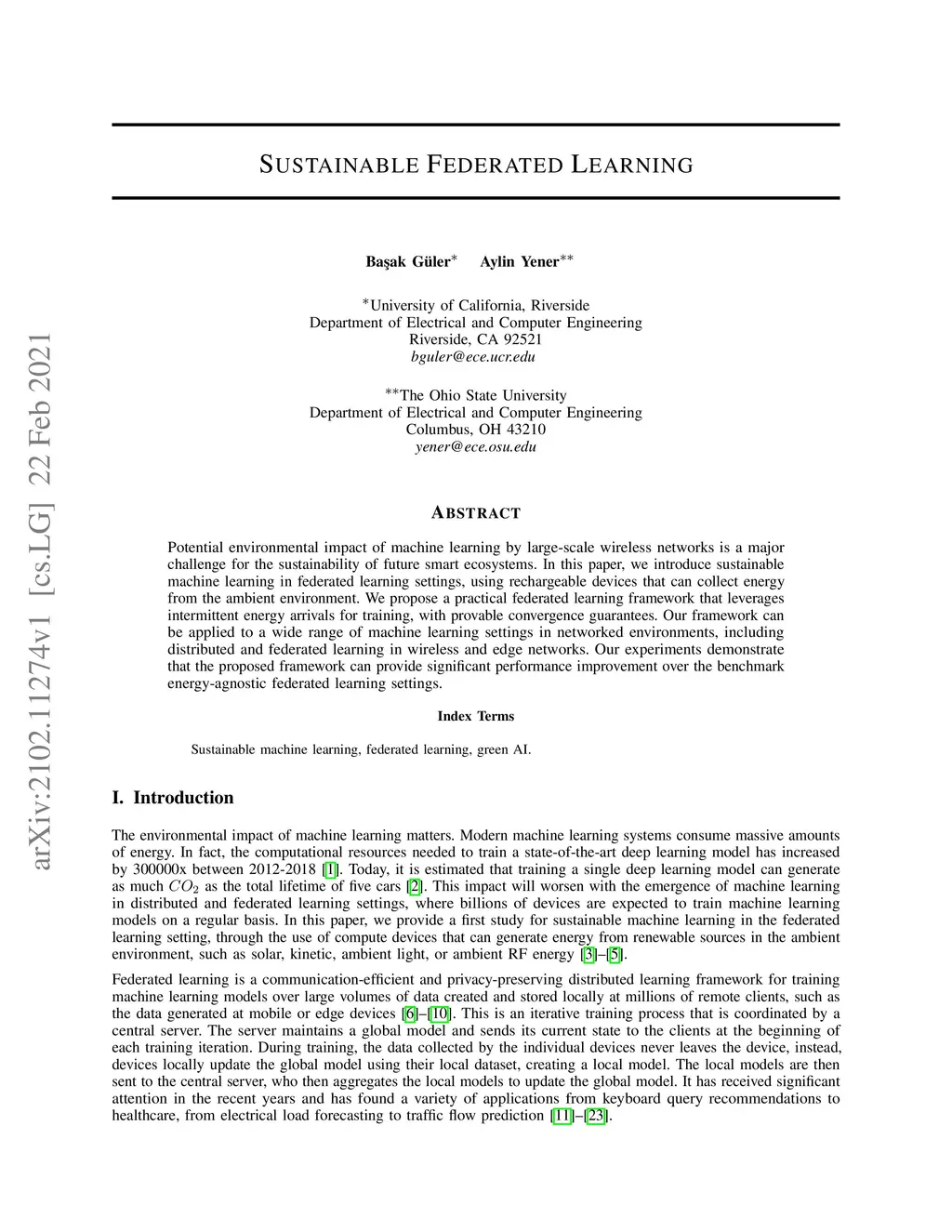 Sustainable Federated Learning