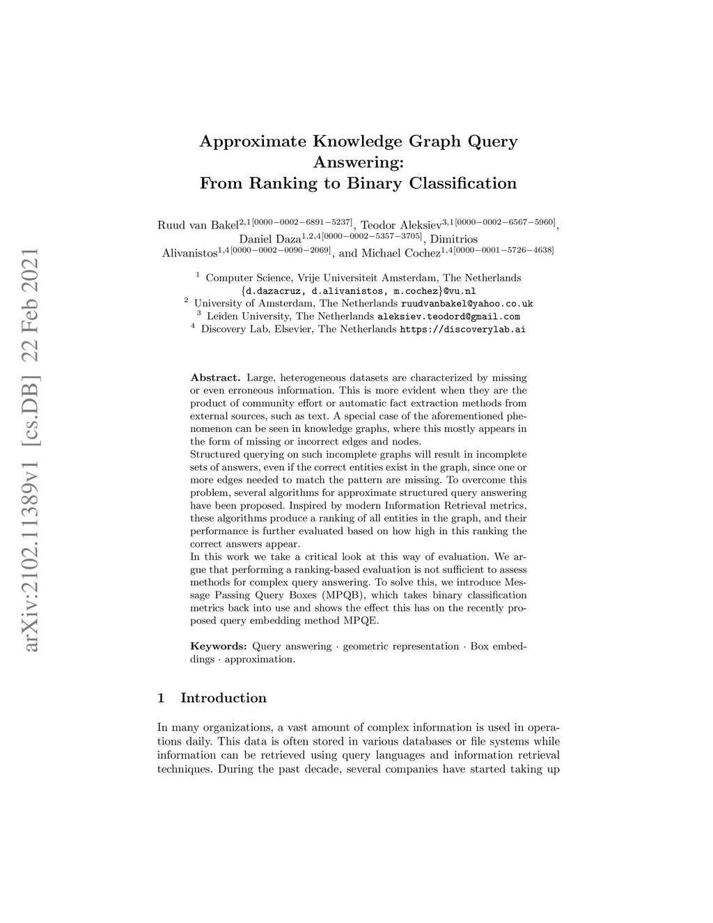 Large, heterogeneous datasets are characterized by missing or even erroneous information. This is more evident when they are the product of community effort or automatic fact extraction methods from external sources, such as text. A special case of the aforementioned phenomenon can be seen in knowledge graphs, where this mostly appears in the form of missing or incorrect edges and nodes. Structured querying on such incomplete graphs will result in incomplete sets of answers, even if the correct entities exist in the graph, since one or more edges needed to match the pattern are missing. To overcome this problem, several algorithms for approximate structured query answering have been proposed. Inspired by modern Information Retrieval metrics, these algorithms produce a ranking of all entities in the graph, and their performance is further evaluated based on how high in this ranking the correct answers appear. In this work we take a critical look at this way of evaluation. We argue that performing a ranking-based evaluation is not sufficient to assess methods for complex query answering. To solve this, we introduce Message Passing Query Boxes (MPQB), which takes binary classification metrics back into use and shows the effect this has on the recently proposed query embedding method MPQE.