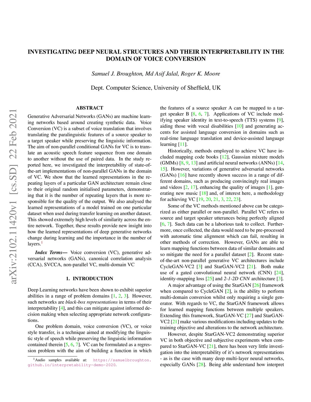 Generative Adversarial Networks (GANs) are machine learning networks based around creating synthetic data. Voice Conversion (VC) is a subset of voice translation that involves translating the paralinguistic features of a source speaker to a target speaker while preserving the linguistic information. The aim of non-parallel conditional GANs for VC is to translate an acoustic speech feature sequence from one domain to another without the use of paired data. In the study reported here, we investigated the interpretability of state-of-the-art implementations of non-parallel GANs in the domain of VC. We show that the learned representations in the repeating layers of a particular GAN architecture remain close to their original random initialised parameters, demonstrating that it is the number of repeating layers that is more responsible for the quality of the output. We also analysed the learned representations of a model trained on one particular dataset when used during transfer learning on another dataset. This showed extremely high levels of similarity across the entire network. Together, these results provide new insight into how the learned representations of deep generative networks change during learning and the importance in the number of layers.