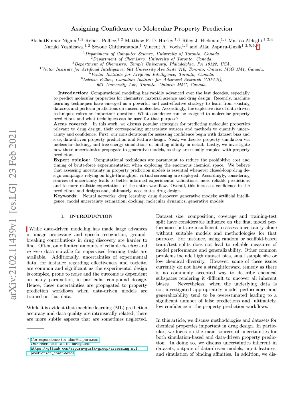 Introduction: Computational modeling has rapidly advanced over the last decades, especially to predict molecular properties for chemistry, material science and drug design. Recently, machine learning techniques have emerged as a powerful and cost-effective strategy to learn from existing datasets and perform predictions on unseen molecules. Accordingly, the explosive rise of data-driven techniques raises an important question: What confidence can be assigned to molecular property predictions and what techniques can be used for that purpose? Areas covered: In this work, we discuss popular strategies for predicting molecular properties relevant to drug design, their corresponding uncertainty sources and methods to quantify uncertainty and confidence. First, our considerations for assessing confidence begin with dataset bias and size, data-driven property prediction and feature design. Next, we discuss property simulation via molecular docking, and free-energy simulations of binding affinity in detail. Lastly, we investigate how these uncertainties propagate to generative models, as they are usually coupled with property predictors. Expert opinion: Computational techniques are paramount to reduce the prohibitive cost and timing of brute-force experimentation when exploring the enormous chemical space. We believe that assessing uncertainty in property prediction models is essential whenever closed-loop drug design campaigns relying on high-throughput virtual screening are deployed. Accordingly, considering sources of uncertainty leads to better-informed experimental validations, more reliable predictions and to more realistic expectations of the entire workflow. Overall, this increases confidence in the predictions and designs and, ultimately, accelerates drug design.