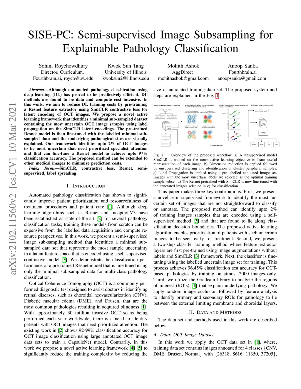 SISE-PC: Semi-supervised Image Subsampling for Explainable Pathology