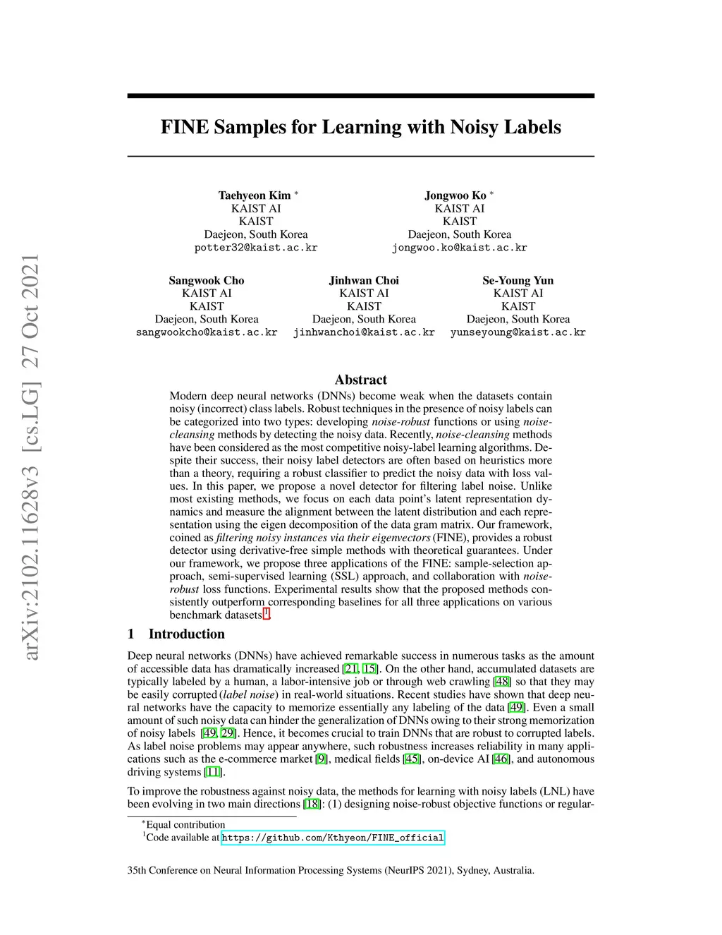 FINE Samples for Learning with Noisy Labels