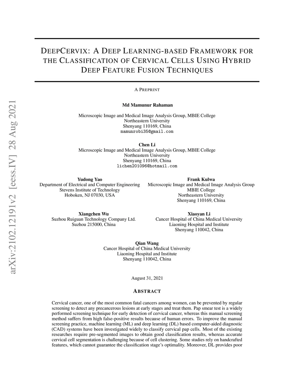 DeepCervix: A Deep Learning-based Framework for the Classification of