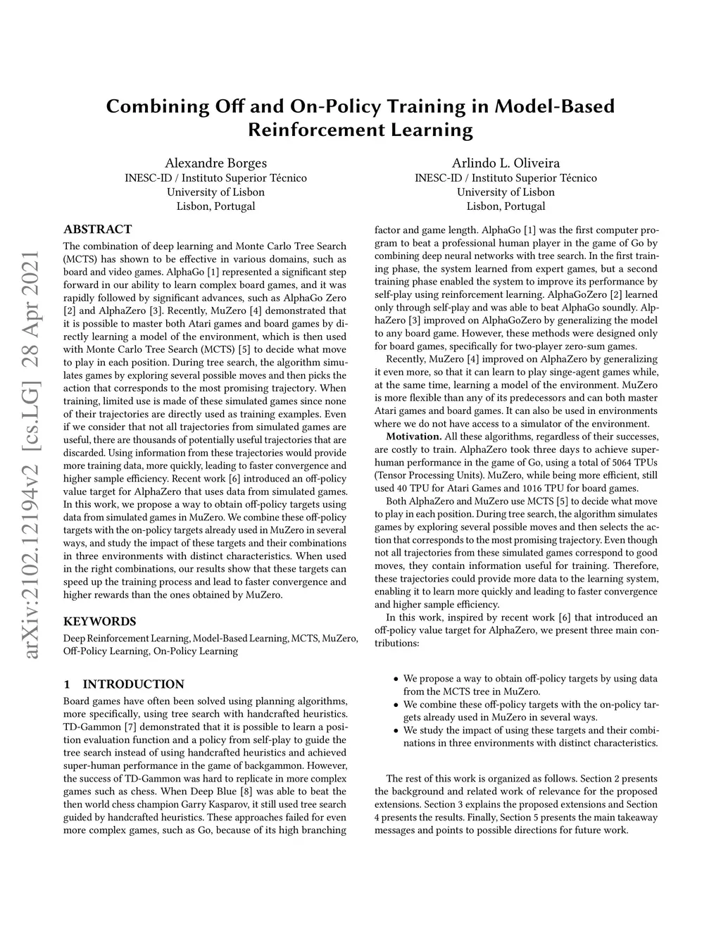 Combining Off and On-Policy Training in Model-Based Reinforcement