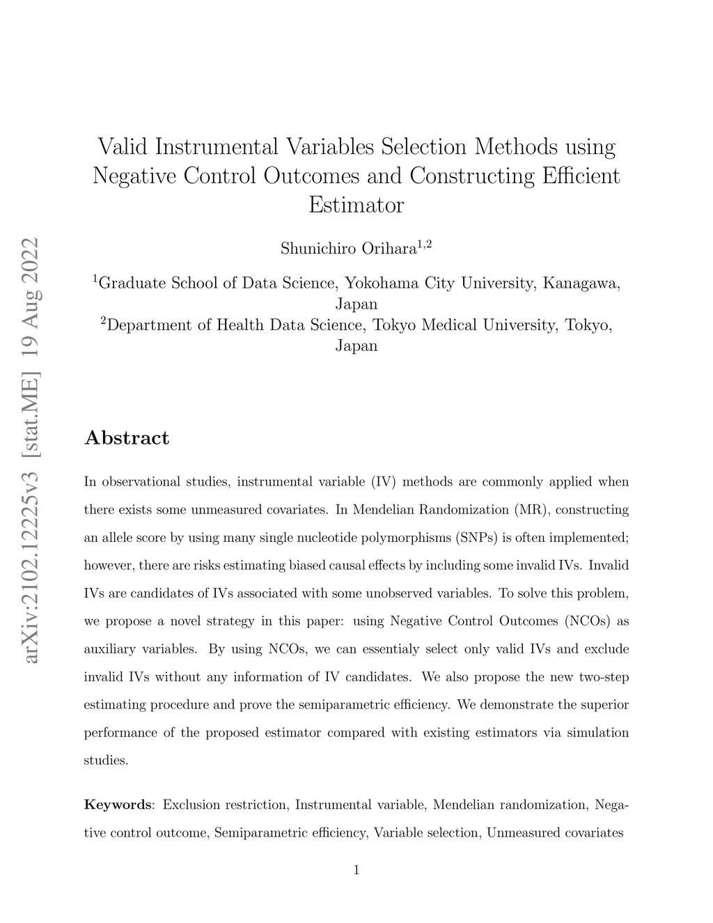 In observational studies, instrumental variable (IV) methods are commonly applied when there exists some unmeasured covariates. In Mendelian Randomization (MR), constructing an allele score by using many single nucleotide polymorphisms (SNPs) is often implemented; however, there are risks estimating biased causal effects by including some invalid IVs. Invalid IVs are candidates of IVs associated with some unobserved variables. To solve this problem, we propose a novel strategy in this paper: using Negative Control Outcomes (NCOs) as auxiliary variables. By using NCOs, we can essentialy select only valid IVs and exclude invalid IVs without any information of IV candidates. We also propose the new two-step estimating procedure and prove the semiparametric efficiency. We demonstrate the superior performance of the proposed estimator compared with existing estimators via simulation studies.