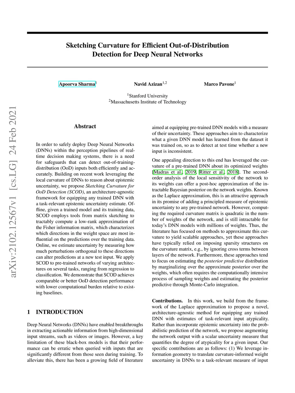 Sketching Curvature for Efficient Out-of-Distribution Detection for Deep