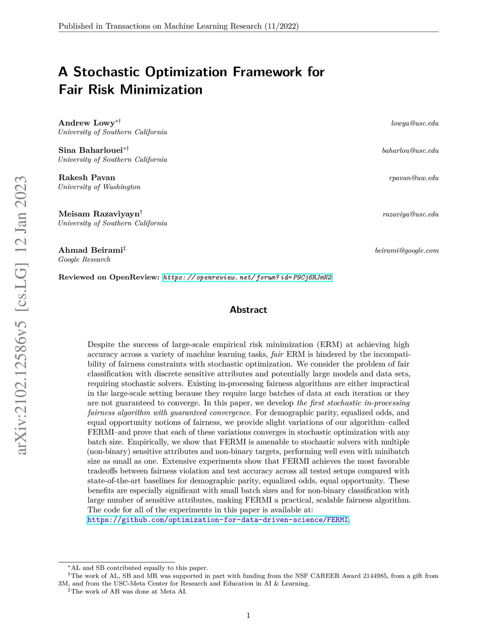 A Stochastic Optimization Framework for Fair Risk Minimization