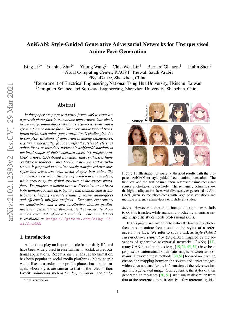 AniGAN: Style-Guided Generative Adversarial Networks for Unsupervised