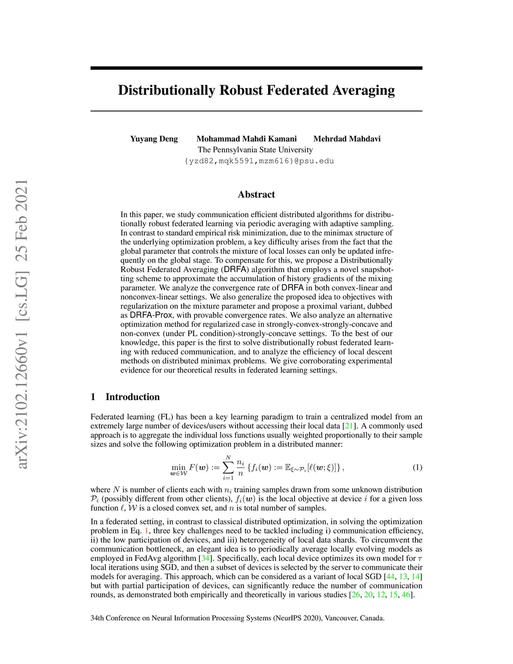 Distributionally Robust Federated Averaging
