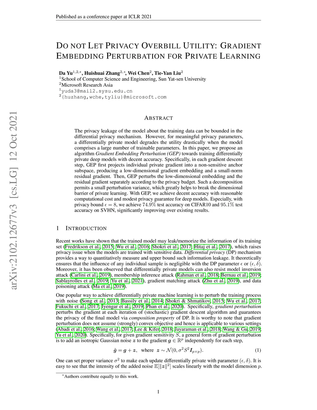 Do Not Let Privacy Overbill Utility: Gradient Embedding Perturbation for