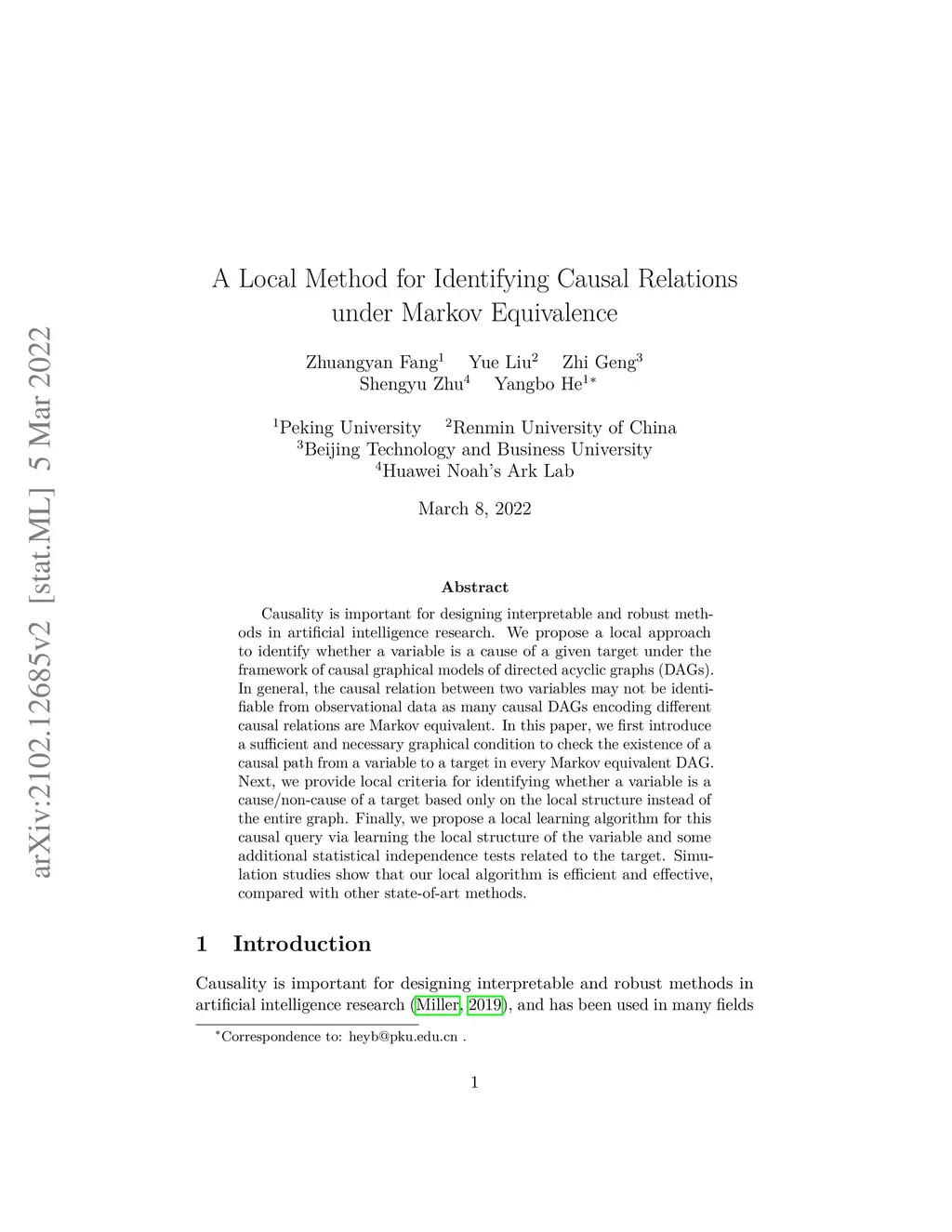 A Local Method for Identifying Causal Relations under Markov Equivalence