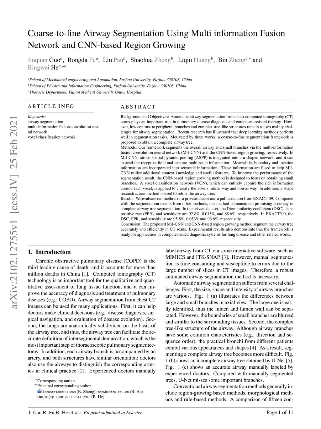 Coarse-to-fine Airway Segmentation Using Multi information Fusion