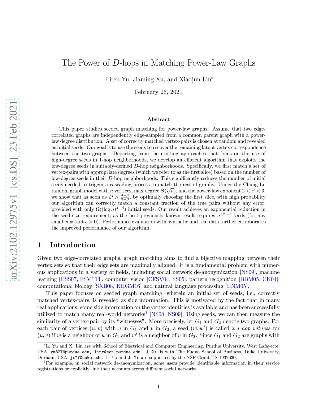This paper studies seeded graph matching for power-law graphs. Assume that two edge-correlated graphs are independently edge-sampled from a common parent graph with a power-law degree distribution. A set of correctly matched vertex-pairs is chosen at random and revealed as initial seeds. Our goal is to use the seeds to recover the remaining latent vertex correspondence between the two graphs. Departing from the existing approaches that focus on the use of high-degree seeds in -hop neighborhoods, we develop an efficient algorithm that exploits the low-degree seeds in suitably-defined -hop neighborhoods. Specifically, we first match a set of vertex-pairs with appropriate degrees (which we refer to as the first slice) based on the number of low-degree seeds in their -hop neighborhoods. This significantly reduces the number of initial seeds needed to trigger a cascading process to match the rest of the graphs. Under the Chung-Lu random graph model with vertices, max degree , and the power-law exponent , we show that as soon as , by optimally choosing the first slice, with high probability our algorithm can correctly match a constant fraction of the true pairs without any error, provided with only initial seeds. Our result achieves an exponential reduction in the seed size requirement, as the best previously known result requires seeds (for any small constant ). Performance evaluation with synthetic and real data further corroborates the improved performance of our algorithm.