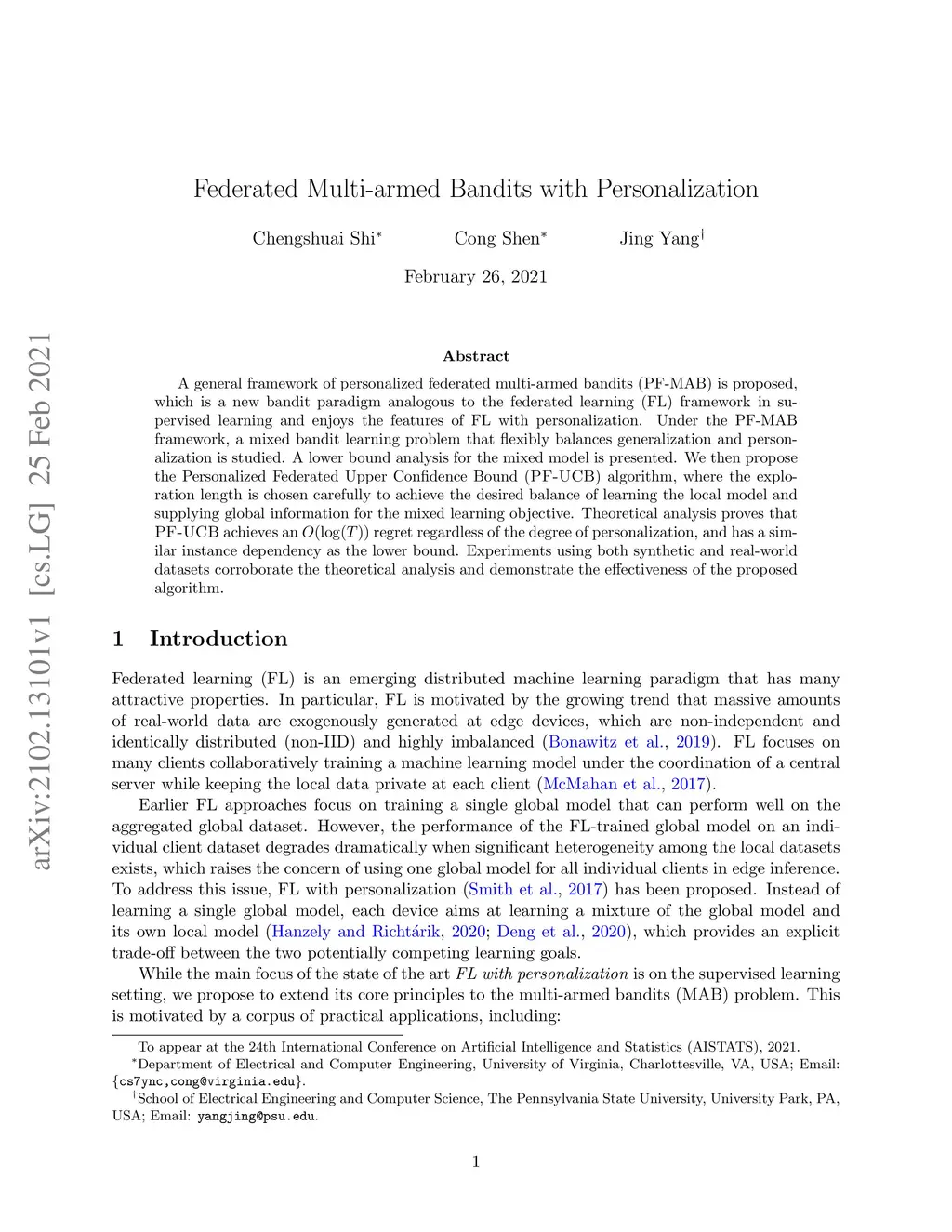 A general framework of personalized federated multi-armed bandits (PF-MAB) is proposed, which is a new bandit paradigm analogous to the federated learning (FL) framework in supervised learning and enjoys the features of FL with personalization. Under the PF-MAB framework, a mixed bandit learning problem that flexibly balances generalization and personalization is studied. A lower bound analysis for the mixed model is presented. We then propose the Personalized Federated Upper Confidence Bound (PF-UCB) algorithm, where the exploration length is chosen carefully to achieve the desired balance of learning the local model and supplying global information for the mixed learning objective. Theoretical analysis proves that PF-UCB achieves an regret regardless of the degree of personalization, and has a similar instance dependency as the lower bound. Experiments using both synthetic and real-world datasets corroborate the theoretical analysis and demonstrate the effectiveness of the proposed algorithm.