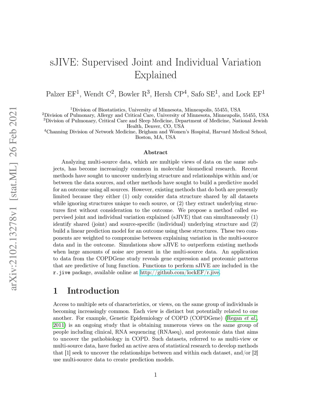 Analyzing multi-source data, which are multiple views of data on the same subjects, has become increasingly common in molecular biomedical research. Recent methods have sought to uncover underlying structure and relationships within and/or between the data sources, and other methods have sought to build a predictive model for an outcome using all sources. However, existing methods that do both are presently limited because they either (1) only consider data structure shared by all datasets while ignoring structures unique to each source, or (2) they extract underlying structures first without consideration to the outcome. We propose a method called supervised joint and individual variation explained (sJIVE) that can simultaneously (1) identify shared (joint) and source-specific (individual) underlying structure and (2) build a linear prediction model for an outcome using these structures. These two components are weighted to compromise between explaining variation in the multi-source data and in the outcome. Simulations show sJIVE to outperform existing methods when large amounts of noise are present in the multi-source data. An application to data from the COPDGene study reveals gene expression and proteomic patterns that are predictive of lung function. Functions to perform sJIVE are included in the R.JIVE package, available online at http://github.com/lockEF/r.jive .