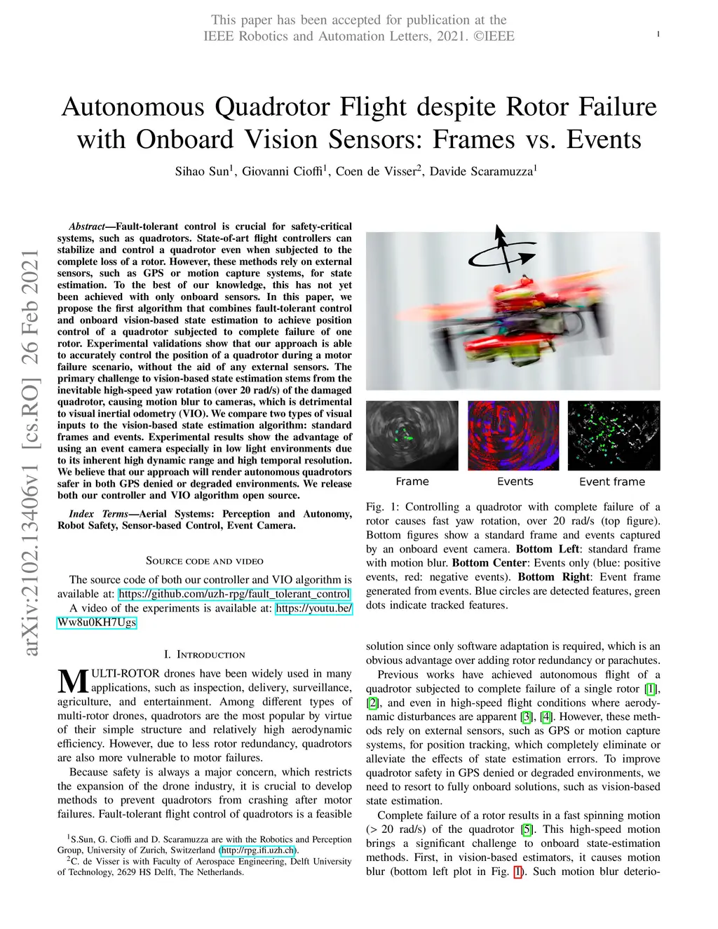 Autonomous Quadrotor Flight despite Rotor Failure with Onboard Vision