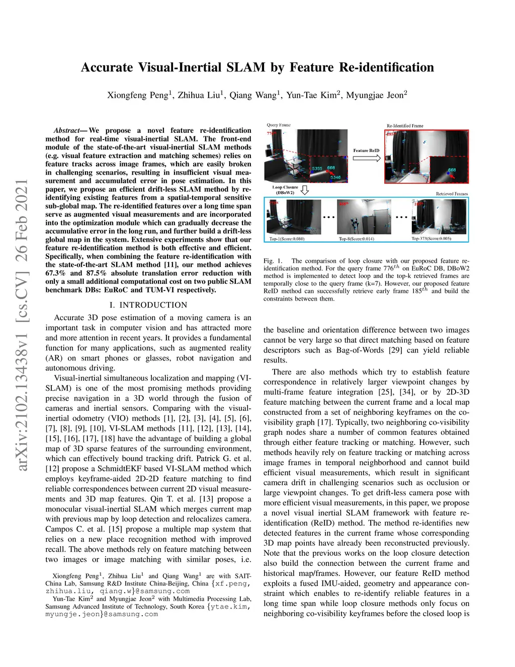 Accurate Visual-Inertial SLAM by Feature Re-identification