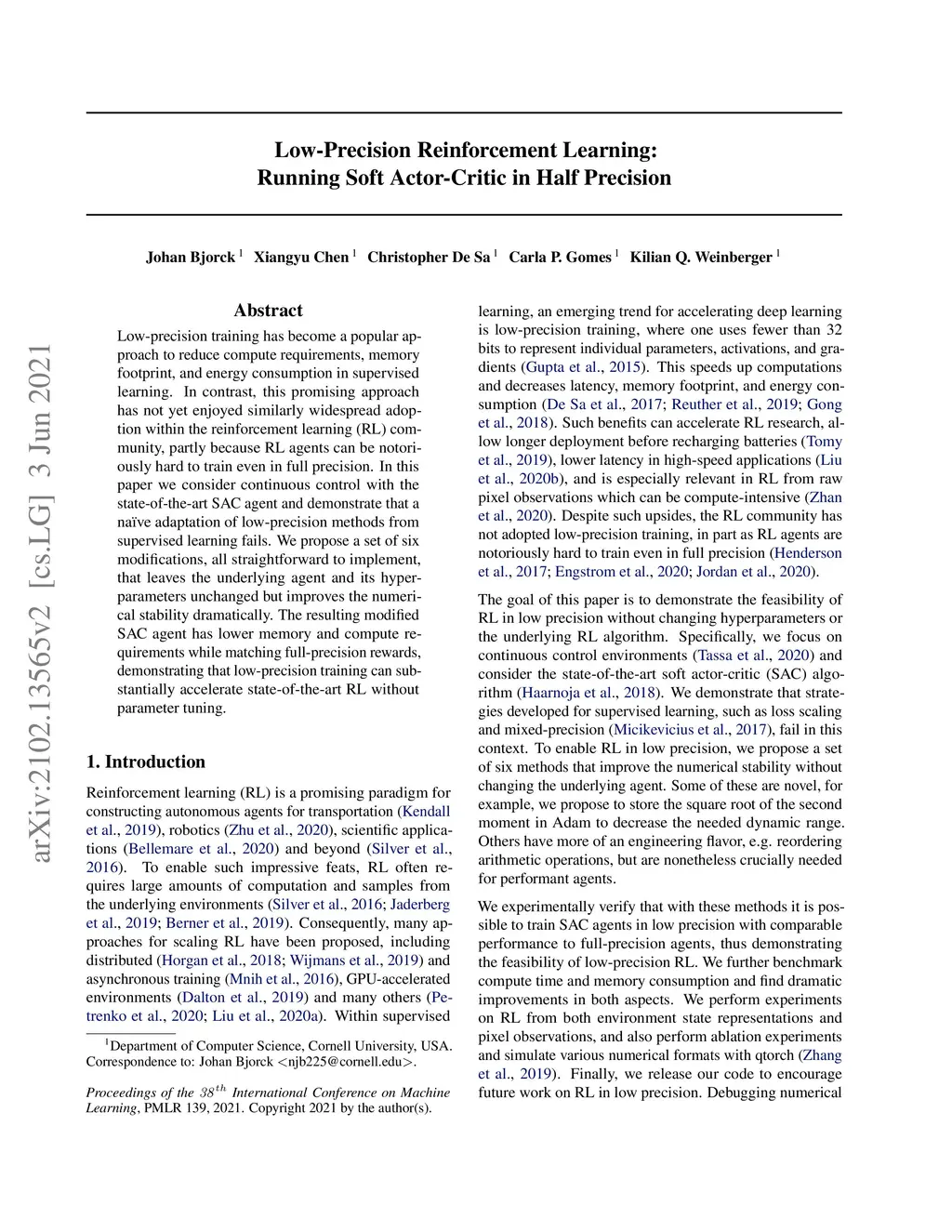 Low-Precision Reinforcement Learning: Running Soft Actor-Critic in Half