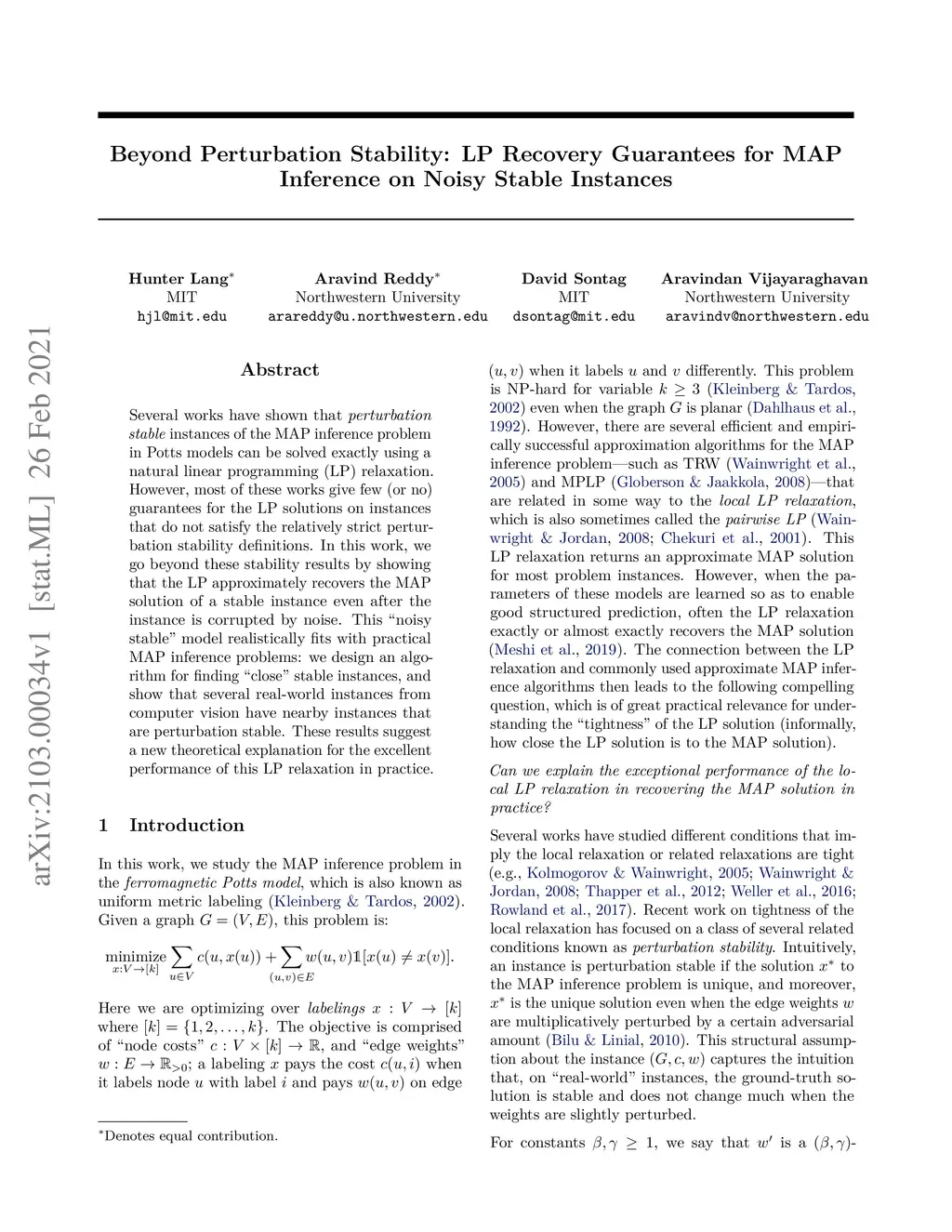 Several works have shown that perturbation stable instances of the MAP inference problem in Potts models can be solved exactly using a natural linear programming (LP) relaxation. However, most of these works give few (or no) guarantees for the LP solutions on instances that do not satisfy the relatively strict perturbation stability definitions. In this work, we go beyond these stability results by showing that the LP approximately recovers the MAP solution of a stable instance even after the instance is corrupted by noise. This "noisy stable" model realistically fits with practical MAP inference problems: we design an algorithm for finding "close" stable instances, and show that several real-world instances from computer vision have nearby instances that are perturbation stable. These results suggest a new theoretical explanation for the excellent performance of this LP relaxation in practice.