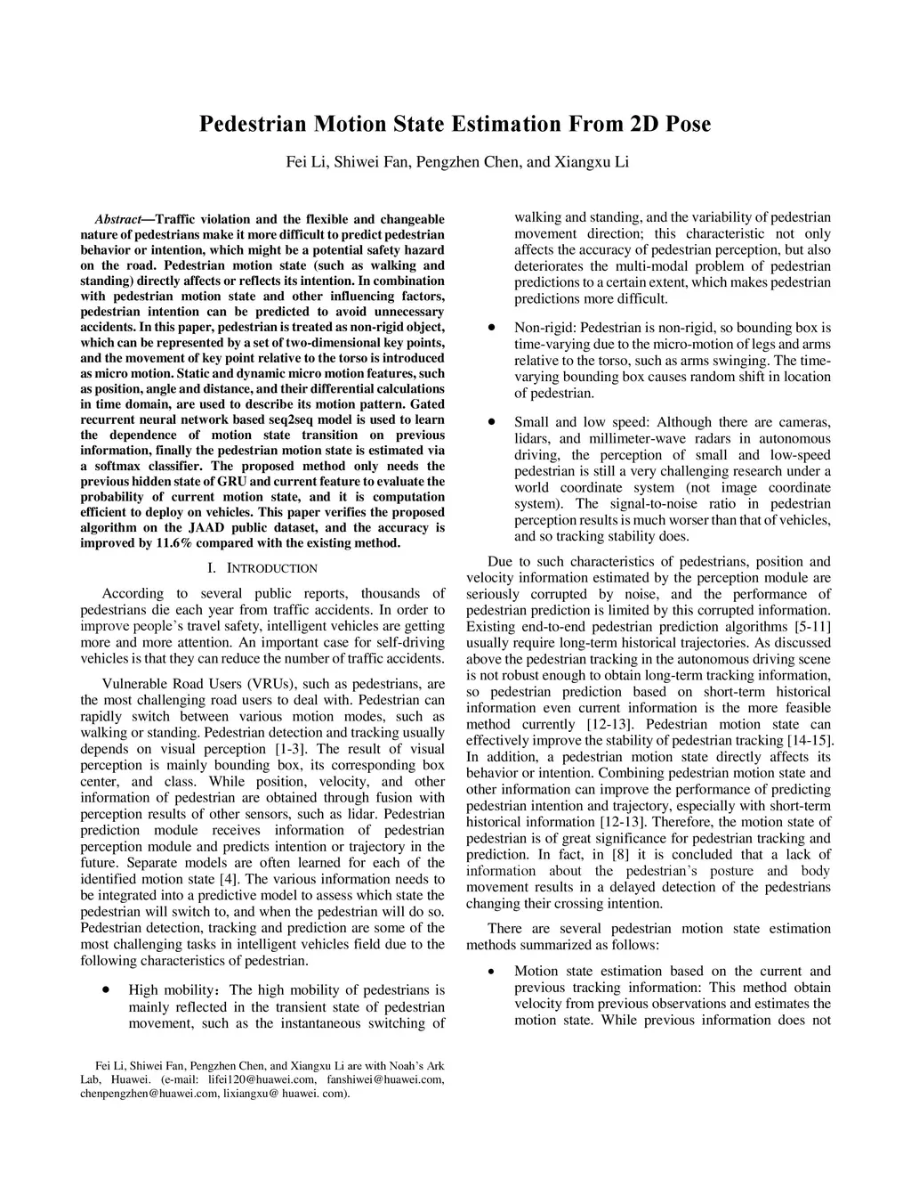 Pedestrian Motion State Estimation From 2D Pose