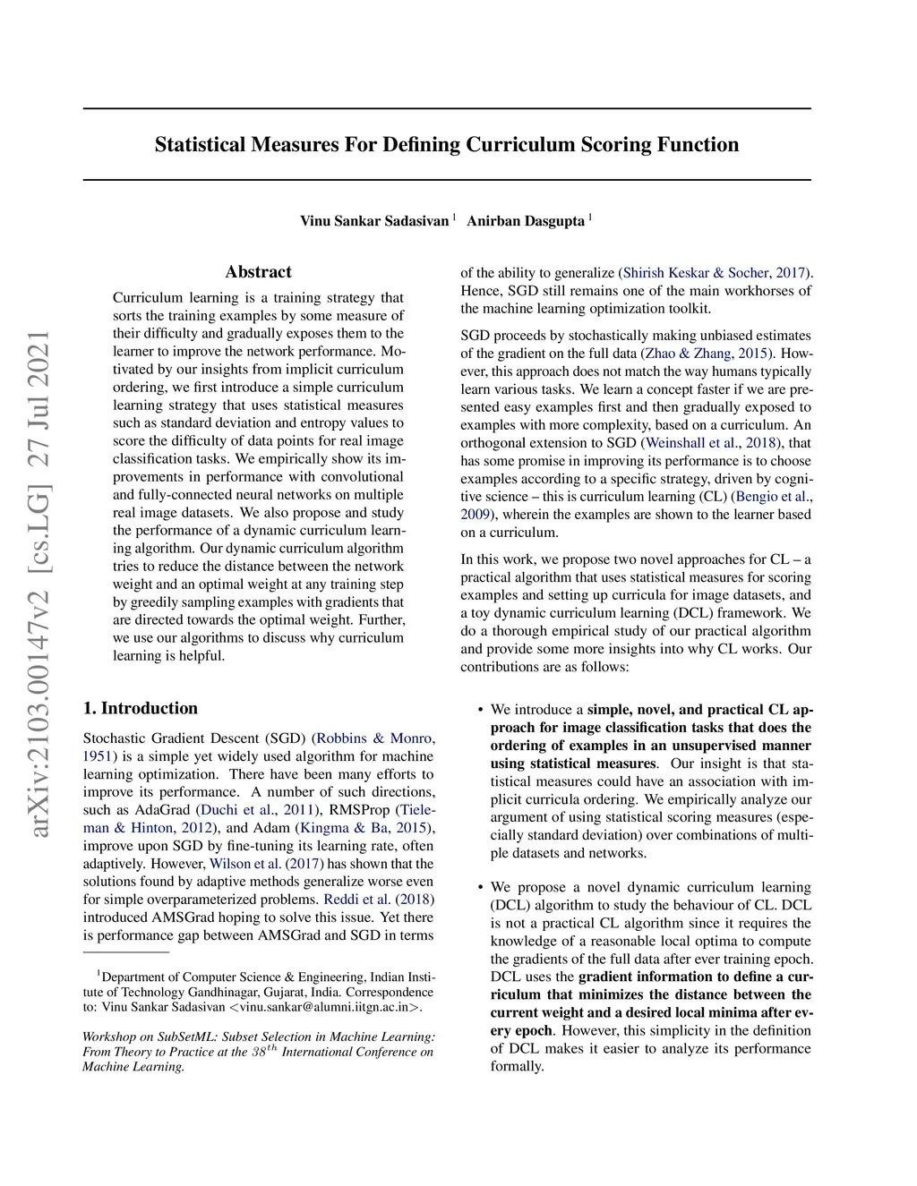 Curriculum learning is a training strategy that sorts the training examples by some measure of their difficulty and gradually exposes them to the learner to improve the network performance. Motivated by our insights from implicit curriculum ordering, we first introduce a simple curriculum learning strategy that uses statistical measures such as standard deviation and entropy values to score the difficulty of data points for real image classification tasks. We empirically show its improvements in performance with convolutional and fully-connected neural networks on multiple real image datasets. We also propose and study the performance of a dynamic curriculum learning algorithm. Our dynamic curriculum algorithm tries to reduce the distance between the network weight and an optimal weight at any training step by greedily sampling examples with gradients that are directed towards the optimal weight. Further, we use our algorithms to discuss why curriculum learning is helpful.
