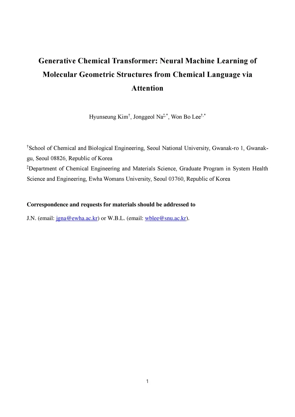 Generative Chemical Transformer: Neural Machine Learning of Molecular