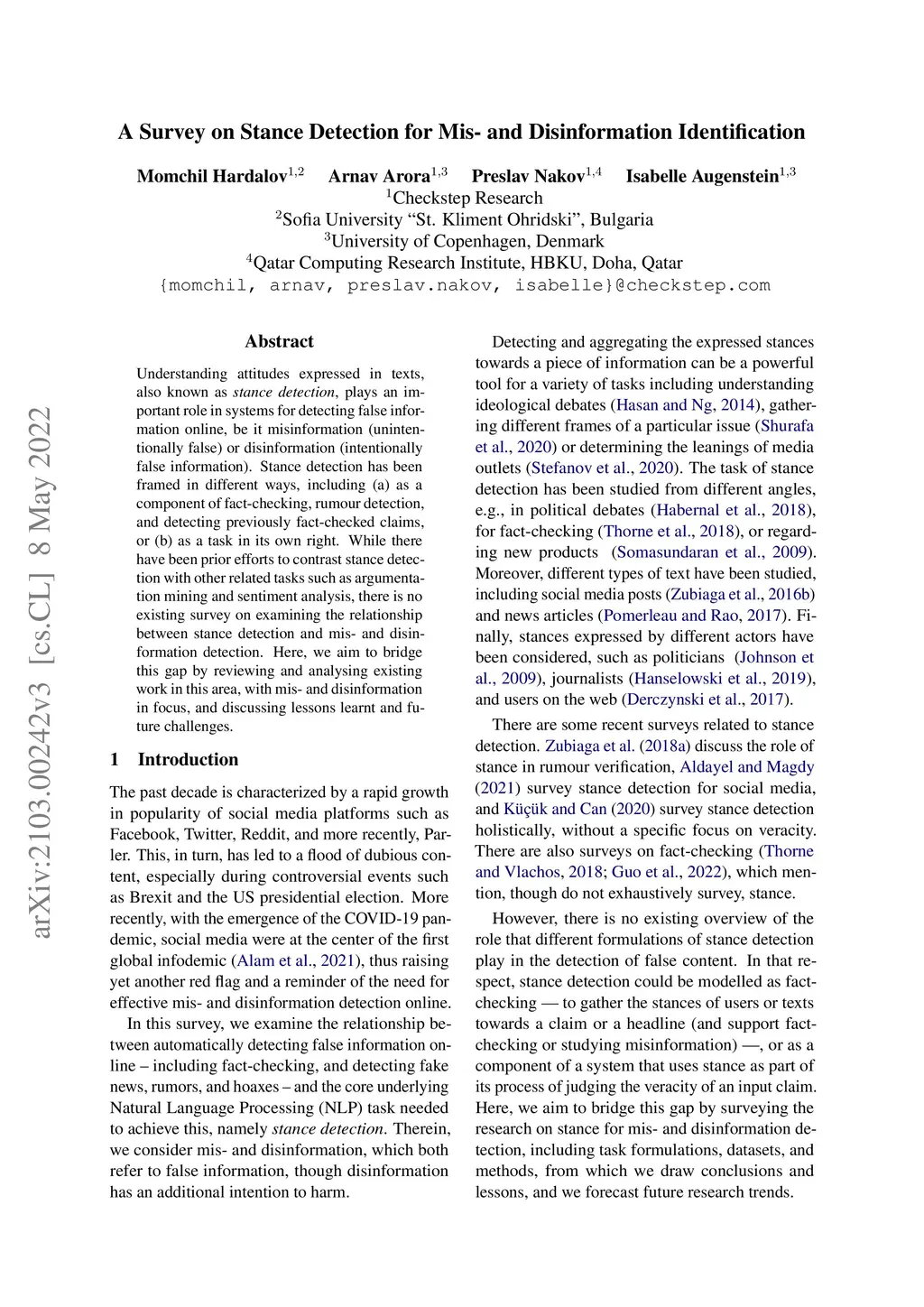 A Survey on Stance Detection for Mis- and Disinformation Identification