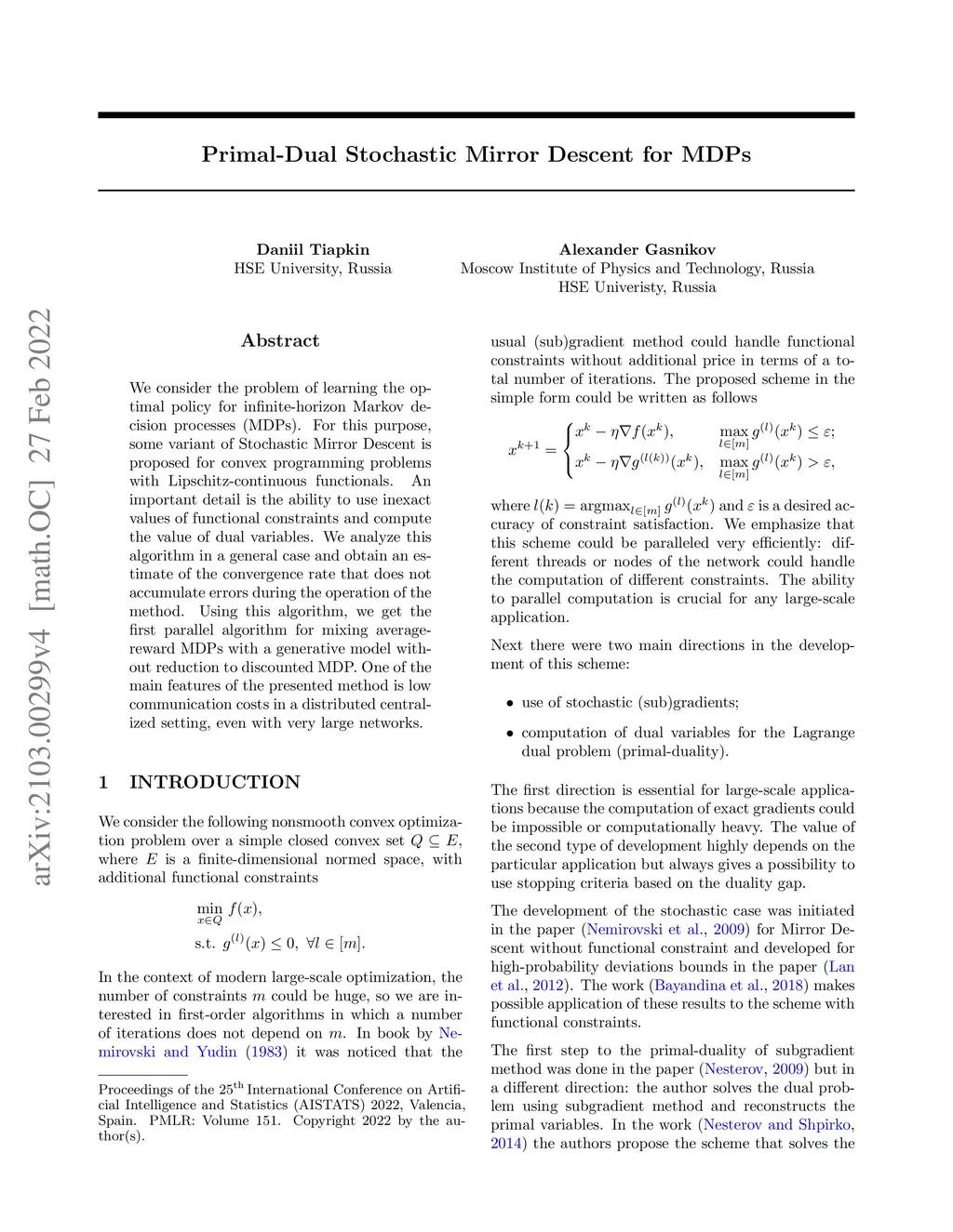 Primal-Dual Stochastic Mirror Descent for MDPs