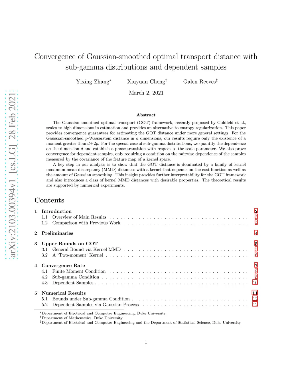 The Gaussian-smoothed optimal transport (GOT) framework, recently proposed by Goldfeld et al., scales to high dimensions in estimation and provides an alternative to entropy regularization. This paper provides convergence guarantees for estimating the GOT distance under more general settings. For the Gaussian-smoothed -Wasserstein distance in dimensions, our results require only the existence of a moment greater than . For the special case of sub-gamma distributions, we quantify the dependence on the dimension and establish a phase transition with respect to the scale parameter. We also prove convergence for dependent samples, only requiring a condition on the pairwise dependence of the samples measured by the covariance of the feature map of a kernel space. A key step in our analysis is to show that the GOT distance is dominated by a family of kernel maximum mean discrepancy (MMD) distances with a kernel that depends on the cost function as well as the amount of Gaussian smoothing. This insight provides further interpretability for the GOT framework and also introduces a class of kernel MMD distances with desirable properties. The theoretical results are supported by numerical experiments.