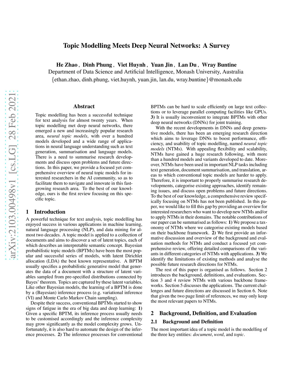 Topic Modelling Meets Deep Neural Networks: A Survey