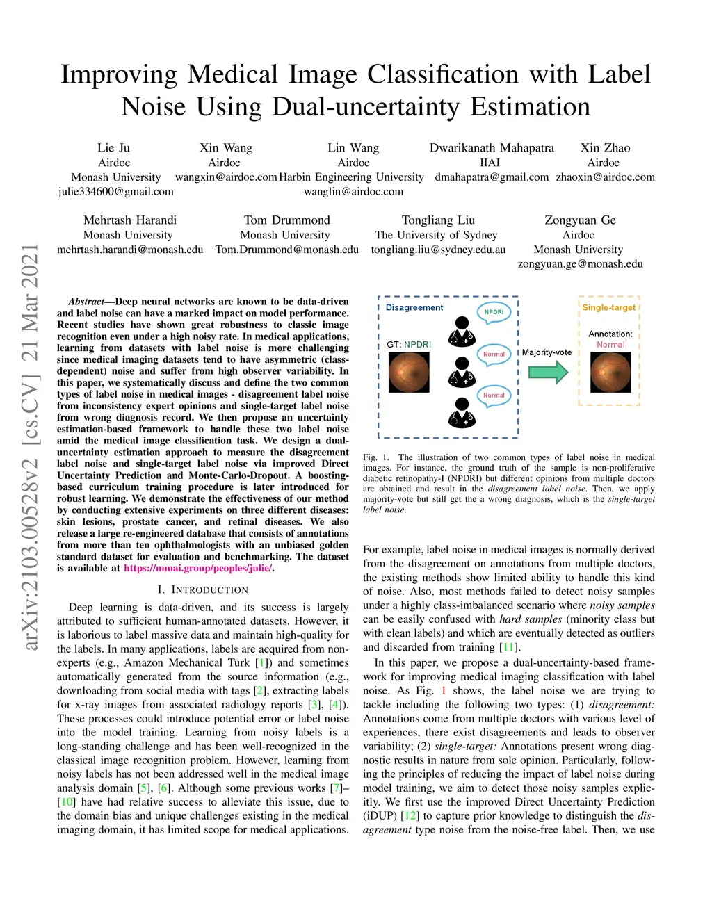 Improving Medical Image Classification with Label Noise Using Dual-uncertainty Estimation