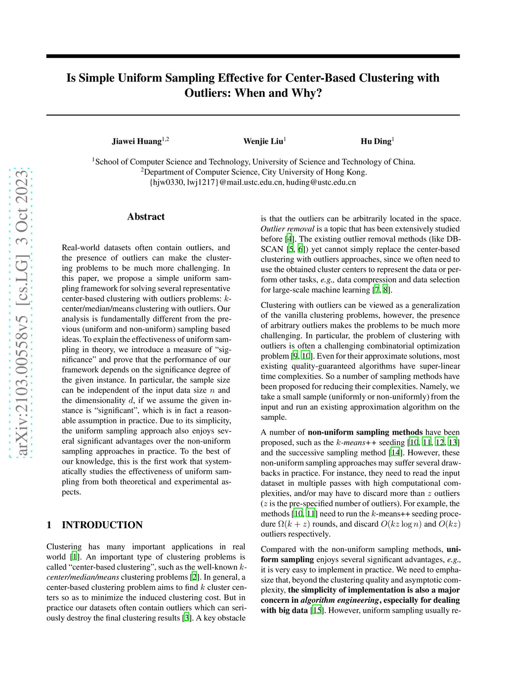 Real-world datasets often contain outliers, and the presence of outliers can make the clustering problems to be much more challenging. In this paper, we propose a simple uniform sampling framework for solving three representative center-based clustering with outliers problems: -center/median/means clustering with outliers. Our analysis is fundamentally different from the previous (uniform and non-uniform) sampling based ideas. To explain the effectiveness of uniform sampling in theory, we introduce a measure of "significance" and prove that the performance of our framework depends on the significance degree of the given instance. In particular, the sample size can be independent of the input data size and the dimensionality , if we assume the given instance is "significant", which is in fact a fairly reasonable assumption in practice. Due to its simplicity, the uniform sampling approach also enjoys several significant advantages over the non-uniform sampling approaches in practice. To the best of our knowledge, this is the first work that systematically studies the effectiveness of uniform sampling from both theoretical and experimental aspects.