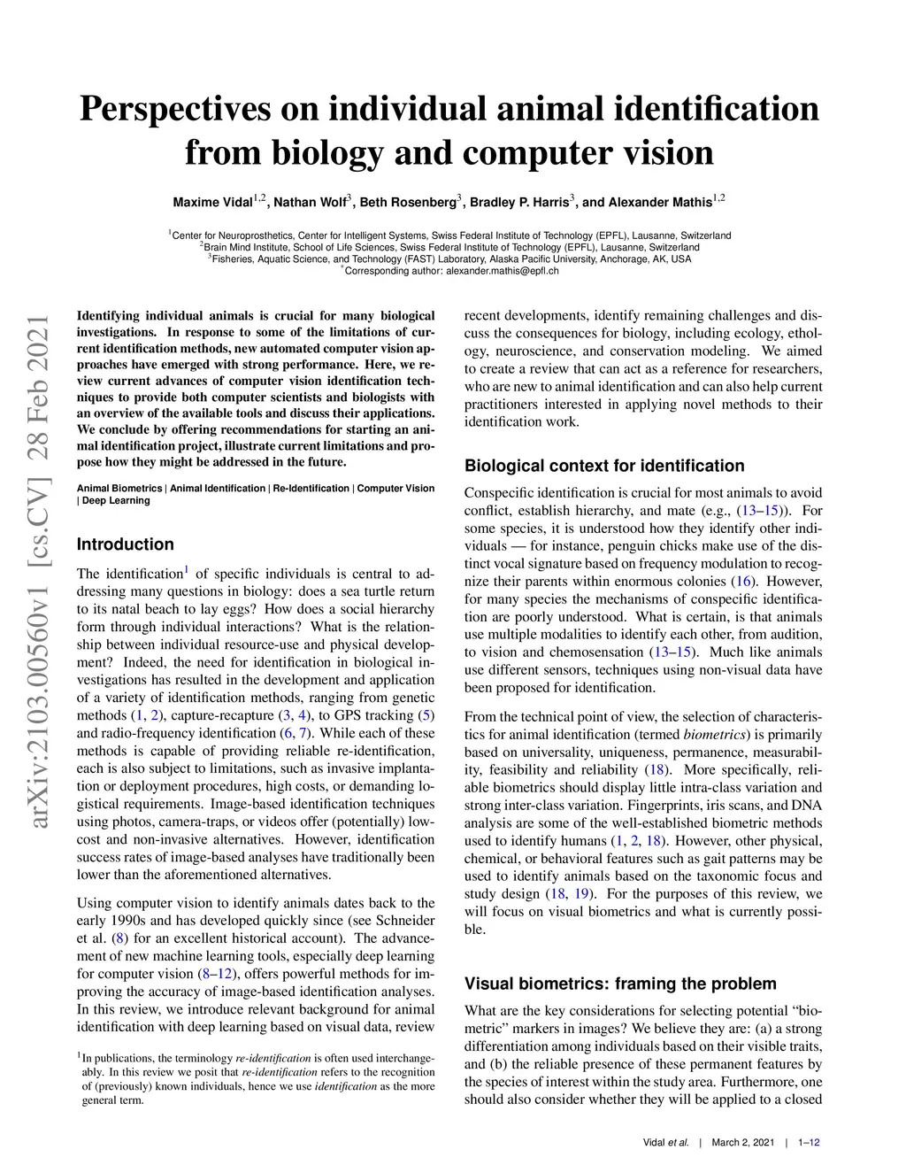 Perspectives on individual animal identification from biology and