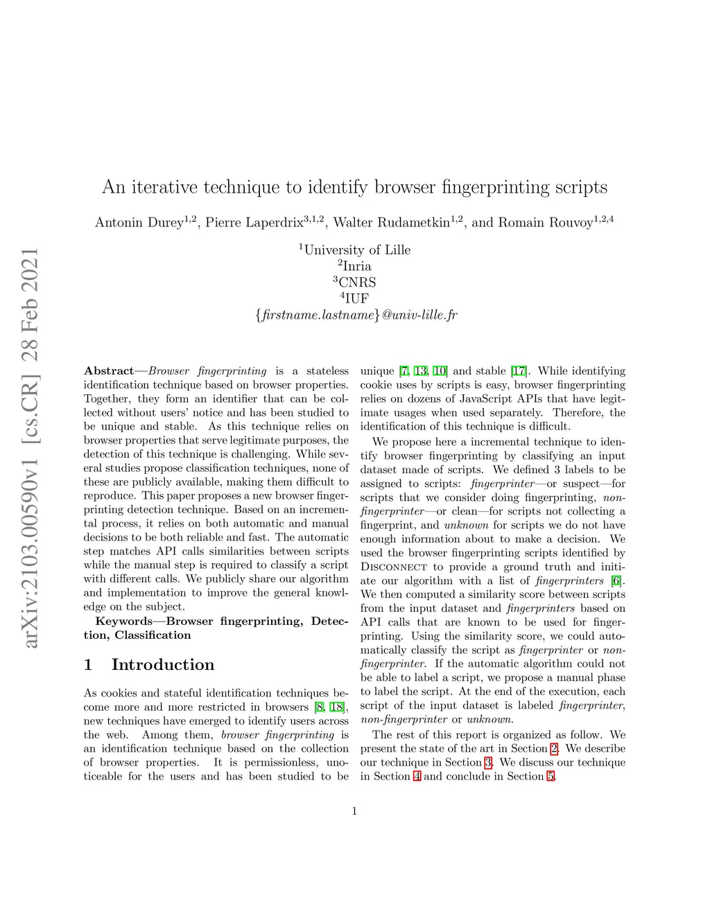 An iterative technique to identify browser fingerprinting scripts