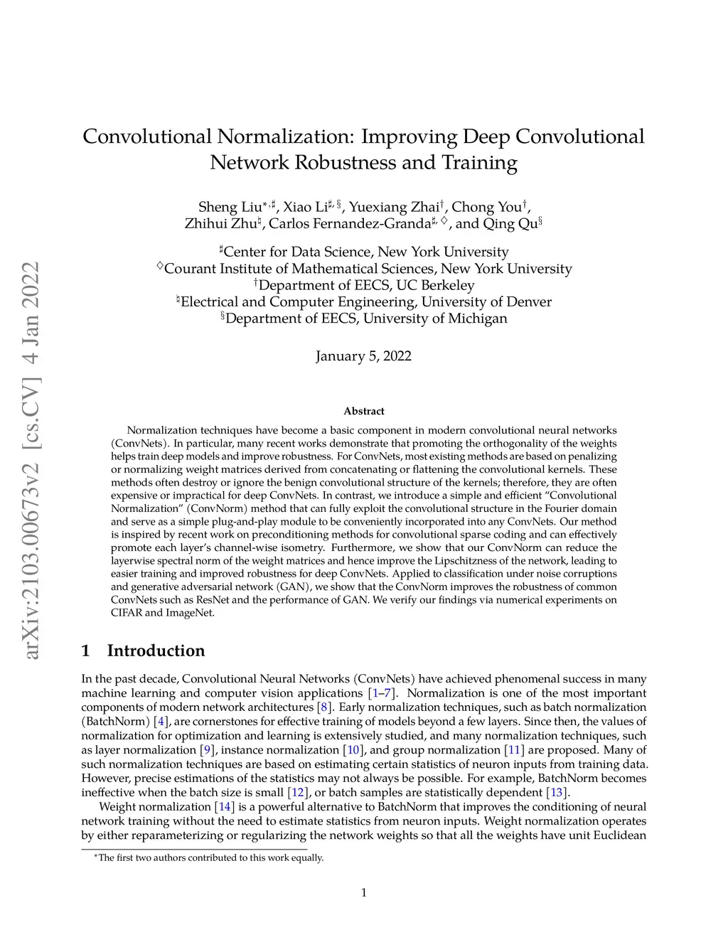 Normalization techniques have become a basic component in modern convolutional neural networks (ConvNets). In particular, many recent works demonstrate that promoting the orthogonality of the weights helps train deep models and improve robustness. For ConvNets, most existing methods are based on penalizing or normalizing weight matrices derived from concatenating or flattening the convolutional kernels. These methods often destroy or ignore the benign convolutional structure of the kernels; therefore, they are often expensive or impractical for deep ConvNets. In contrast, we introduce a simple and efficient "Convolutional Normalization" (ConvNorm) method that can fully exploit the convolutional structure in the Fourier domain and serve as a simple plug-and-play module to be conveniently incorporated into any ConvNets. Our method is inspired by recent work on preconditioning methods for convolutional sparse coding and can effectively promote each layer's channel-wise isometry. Furthermore, we show that our ConvNorm can reduce the layerwise spectral norm of the weight matrices and hence improve the Lipschitzness of the network, leading to easier training and improved robustness for deep ConvNets. Applied to classification under noise corruptions and generative adversarial network (GAN), we show that the ConvNorm improves the robustness of common ConvNets such as ResNet and the performance of GAN. We verify our findings via numerical experiments on CIFAR and ImageNet.