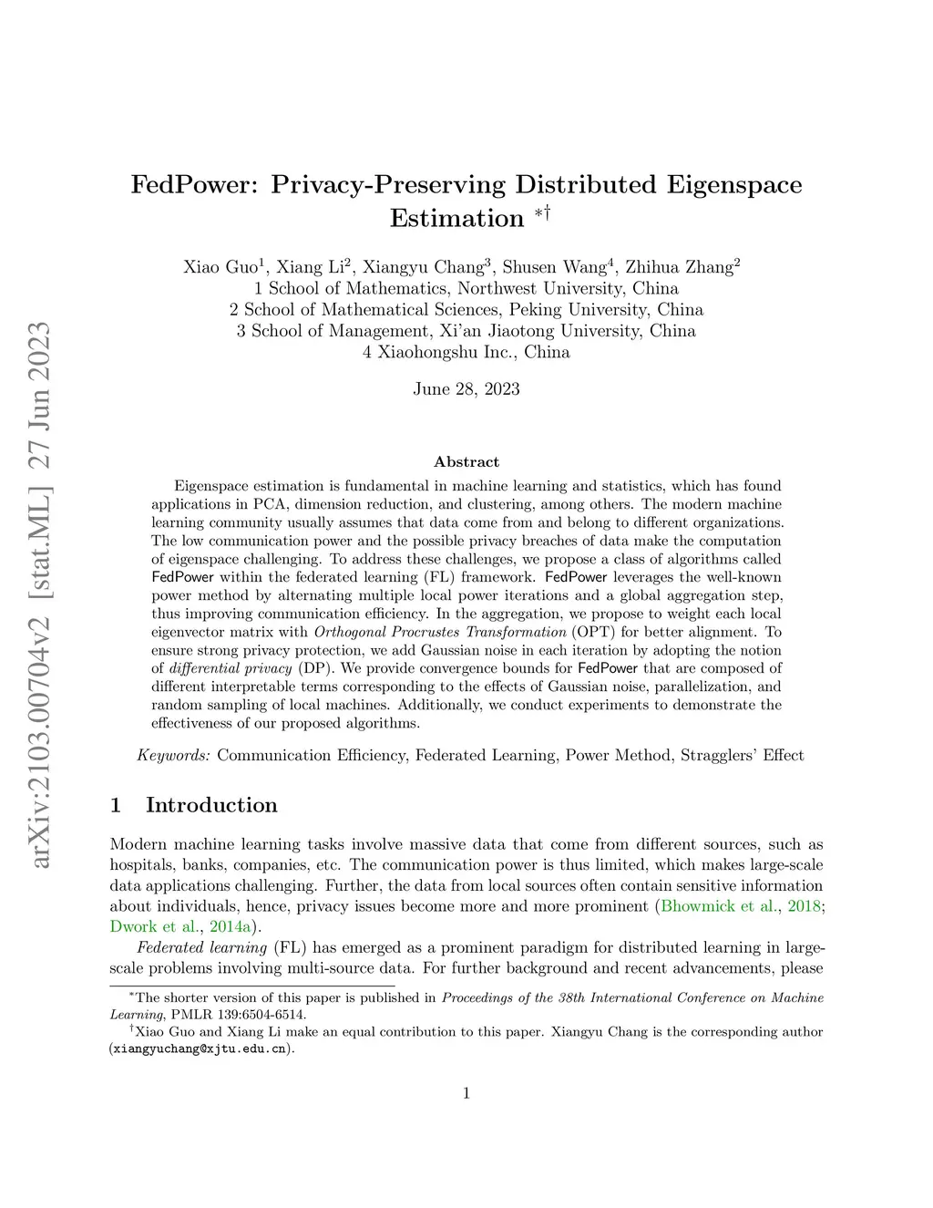 FedPower: Privacy-Preserving Distributed Eigenspace Estimation