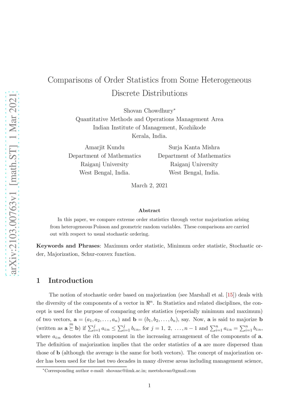 In this paper, we compare extreme order statistics through vector majorization arising from heterogeneous Poisson and geometric random variables. These comparisons are carried out with respect to usual stochastic ordering.