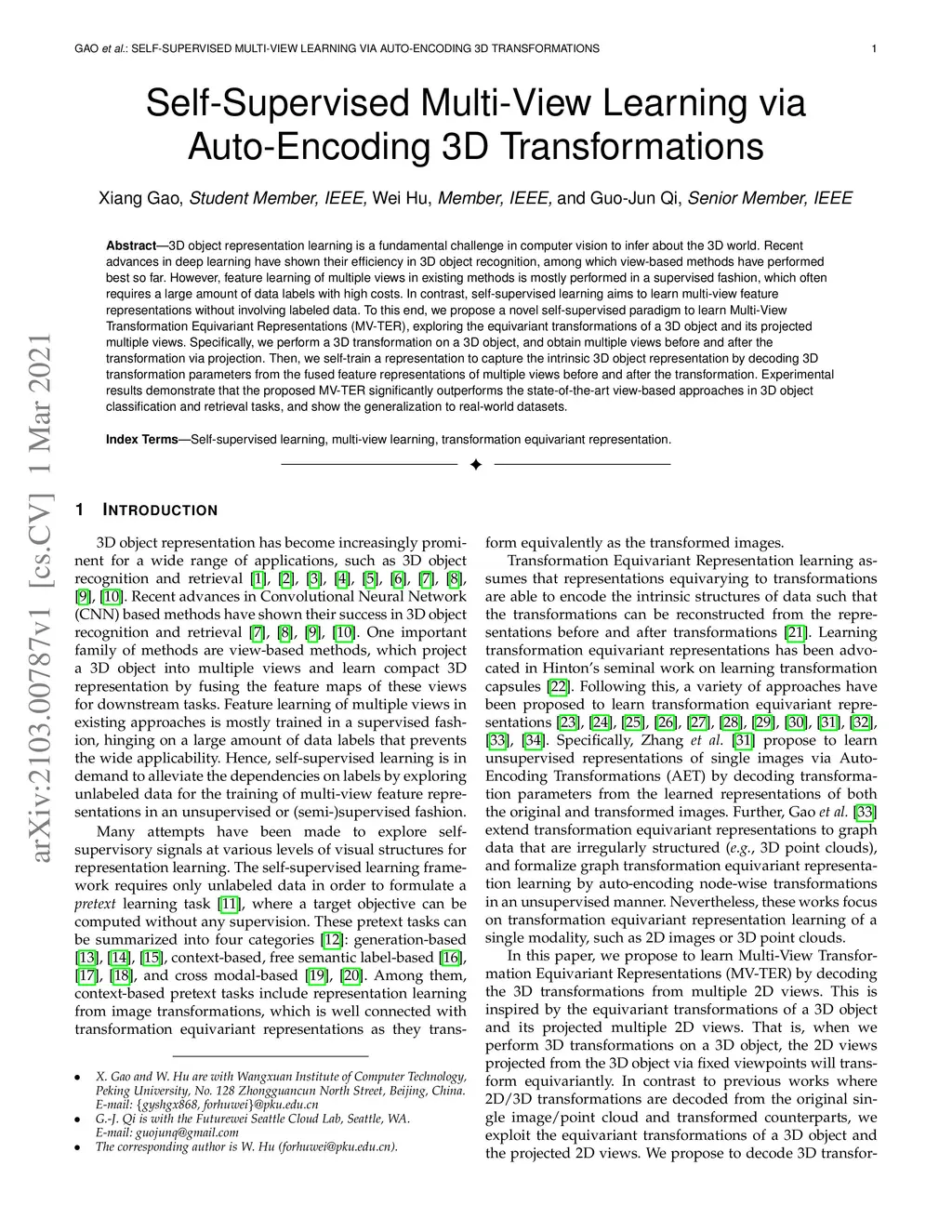 Self-Supervised Multi-View Learning via Auto-Encoding 3D Transformations