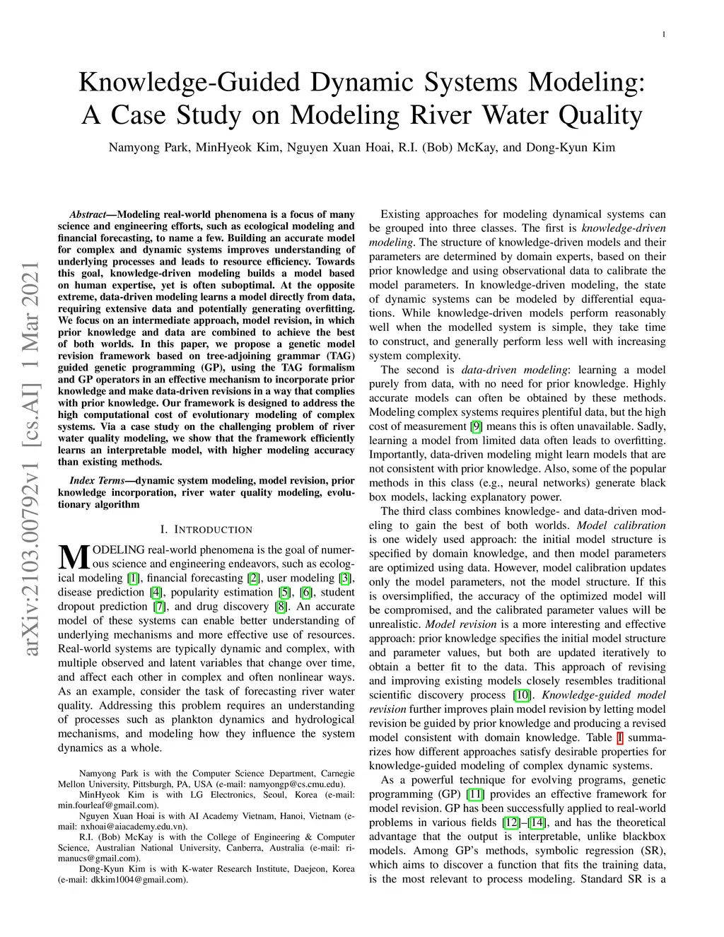 Modeling real-world phenomena is a focus of many science and engineering efforts, such as ecological modeling and financial forecasting, to name a few. Building an accurate model for complex and dynamic systems improves understanding of underlying processes and leads to resource efficiency. Towards this goal, knowledge-driven modeling builds a model based on human expertise, yet is often suboptimal. At the opposite extreme, data-driven modeling learns a model directly from data, requiring extensive data and potentially generating overfitting. We focus on an intermediate approach, model revision, in which prior knowledge and data are combined to achieve the best of both worlds. In this paper, we propose a genetic model revision framework based on tree-adjoining grammar (TAG) guided genetic programming (GP), using the TAG formalism and GP operators in an effective mechanism to incorporate prior knowledge and make data-driven revisions in a way that complies with prior knowledge. Our framework is designed to address the high computational cost of evolutionary modeling of complex systems. Via a case study on the challenging problem of river water quality modeling, we show that the framework efficiently learns an interpretable model, with higher modeling accuracy than existing methods.