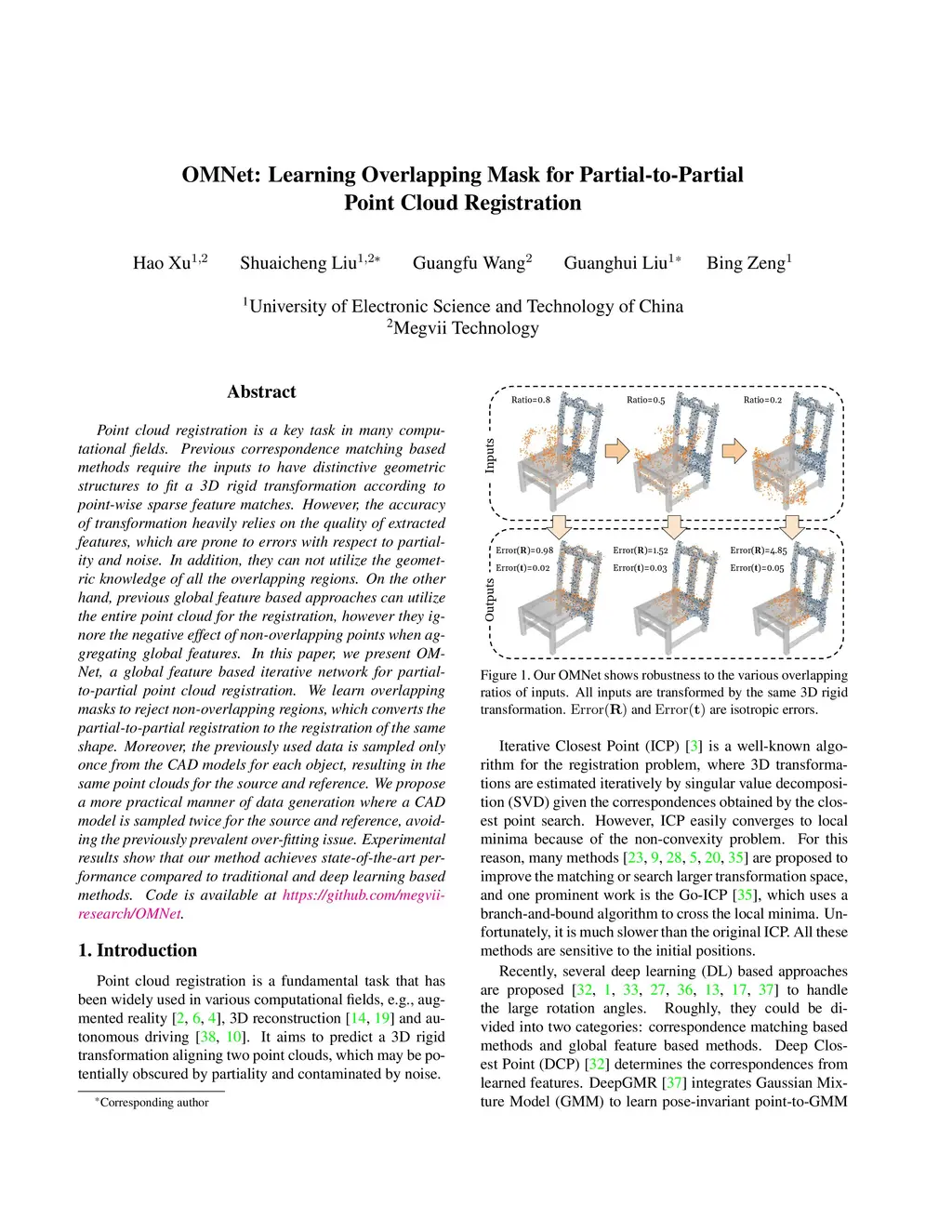 OMNet: Learning Overlapping Mask for Partial-to-Partial Point Cloud