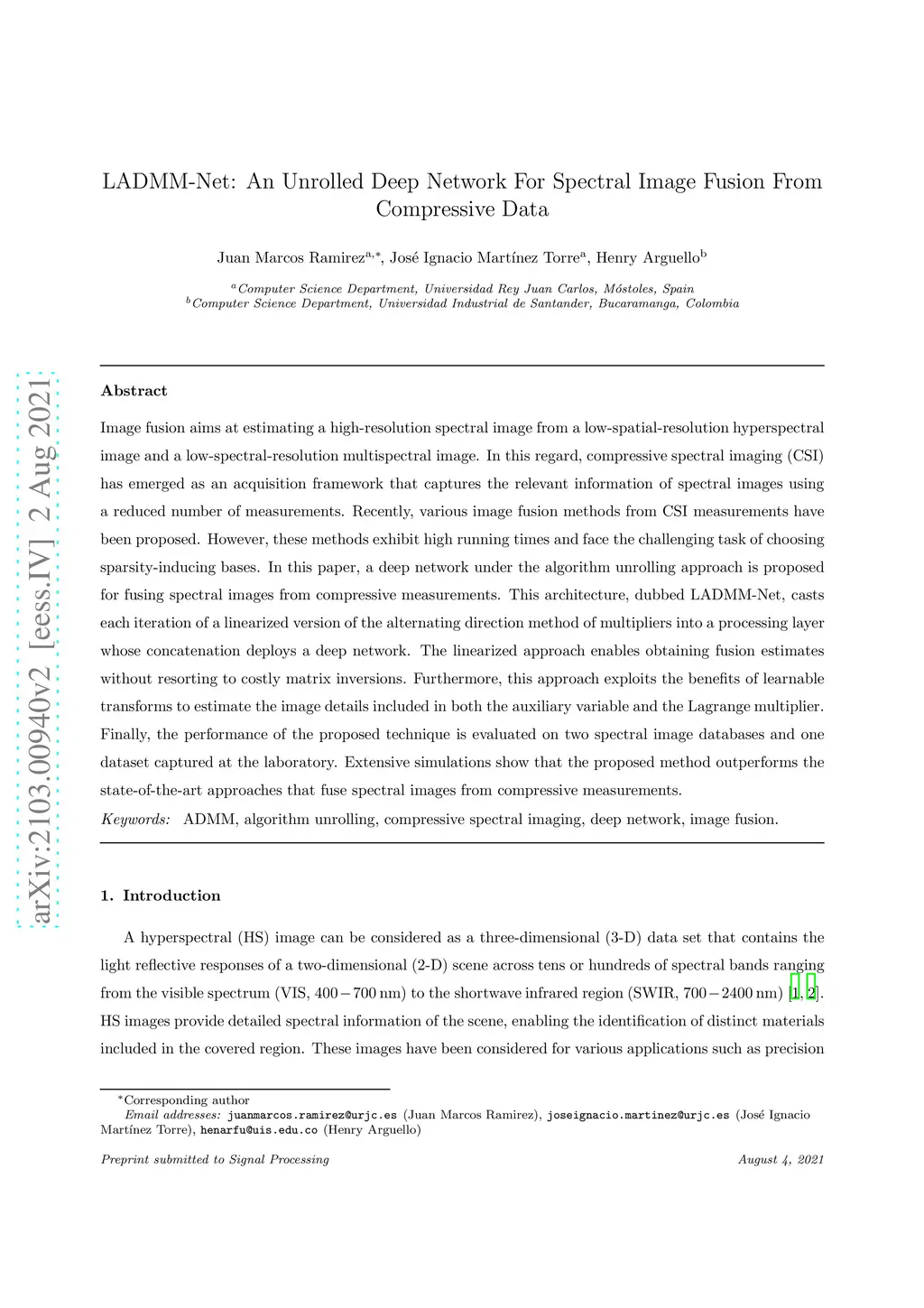 LADMM-Net: An Unrolled Deep Network For Spectral Image Fusion From