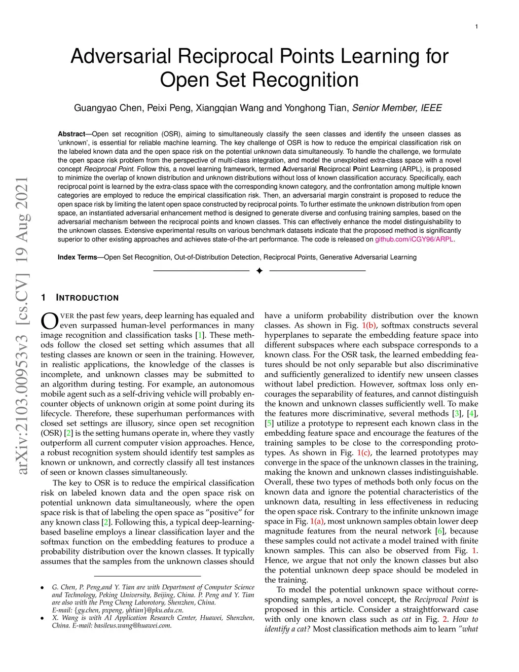 Adversarial Reciprocal Points Learning for Open Set Recognition