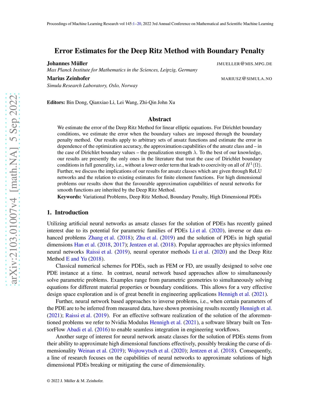 We estimate the error of the Deep Ritz Method for linear elliptic equations. For Dirichlet boundary conditions, we estimate the error when the boundary values are imposed through the boundary penalty method. Our results apply to arbitrary sets of ansatz functions and estimate the error in dependence of the optimization accuracy, the approximation capabilities of the ansatz class and -- in the case of Dirichlet boundary values -- the penalization strength . To the best of our knowledge, our results are presently the only ones in the literature that treat the case of Dirichlet boundary conditions in full generality, i.e., without a lower order term that leads to coercivity on all of . Further, we discuss the implications of our results for ansatz classes which are given through ReLU networks and the relation to existing estimates for finite element functions. For high dimensional problems our results show that the favourable approximation capabilities of neural networks for smooth functions are inherited by the Deep Ritz Method.