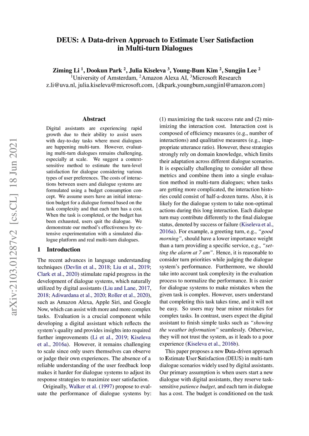 DEUS: A Data-driven Approach to Estimate User Satisfaction in Multi-turn