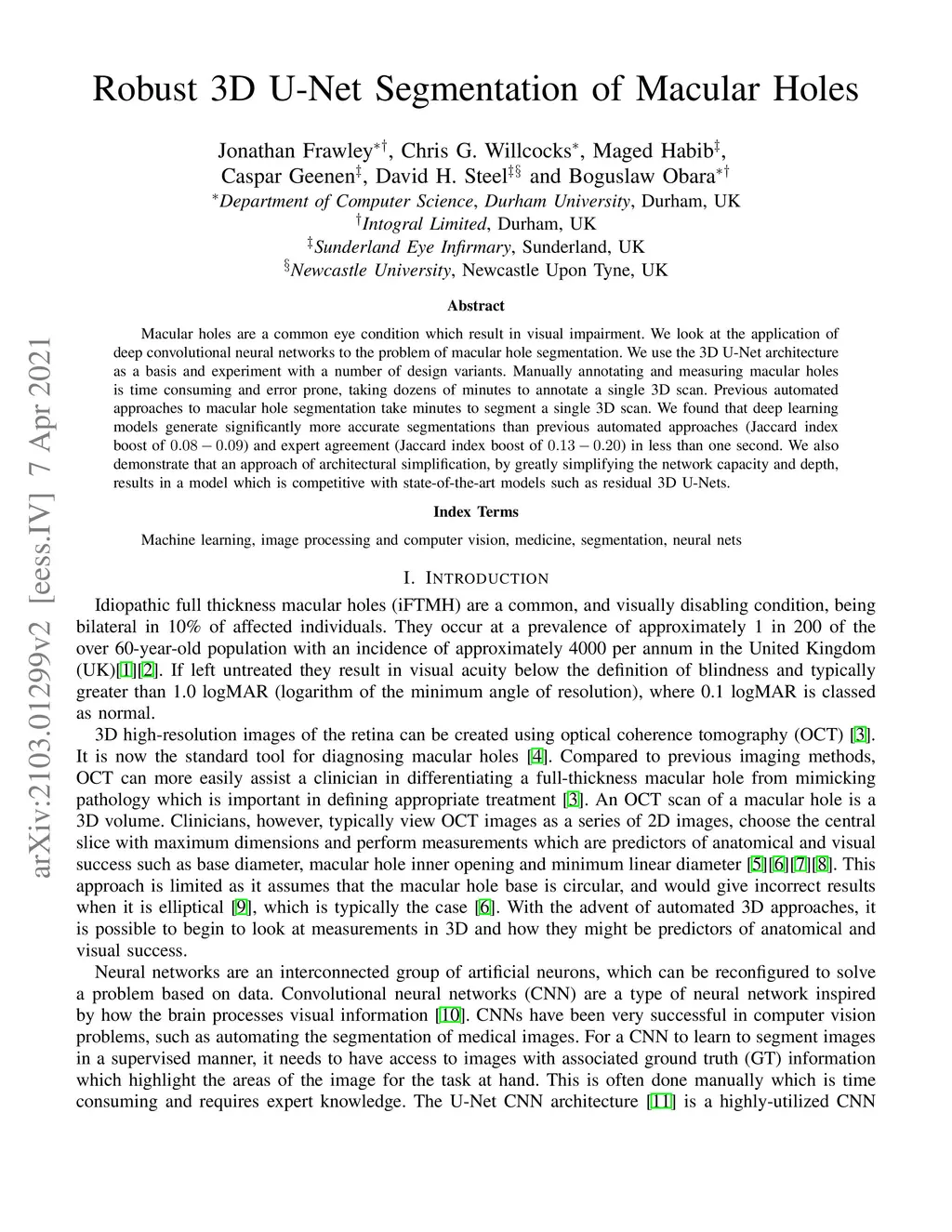Robust 3D U-Net Segmentation of Macular Holes