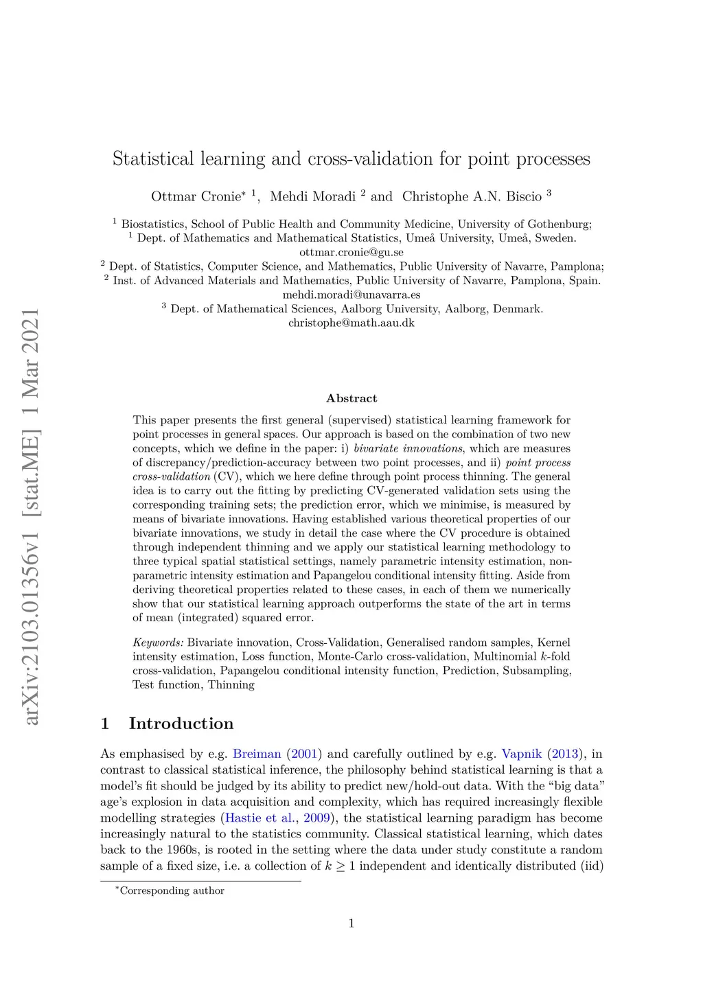 Statistical learning and cross-validation for point processes