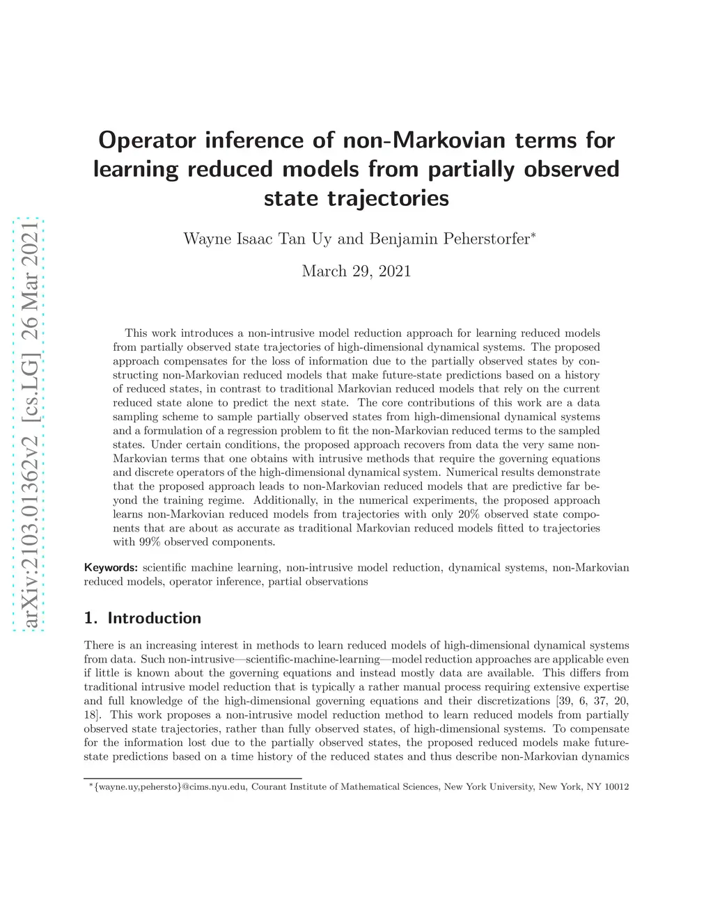 This work introduces a non-intrusive model reduction approach for learning reduced models from partially observed state trajectories of high-dimensional dynamical systems. The proposed approach compensates for the loss of information due to the partially observed states by constructing non-Markovian reduced models that make future-state predictions based on a history of reduced states, in contrast to traditional Markovian reduced models that rely on the current reduced state alone to predict the next state. The core contributions of this work are a data sampling scheme to sample partially observed states from high-dimensional dynamical systems and a formulation of a regression problem to fit the non-Markovian reduced terms to the sampled states. Under certain conditions, the proposed approach recovers from data the very same non-Markovian terms that one obtains with intrusive methods that require the governing equations and discrete operators of the high-dimensional dynamical system. Numerical results demonstrate that the proposed approach leads to non-Markovian reduced models that are predictive far beyond the training regime. Additionally, in the numerical experiments, the proposed approach learns non-Markovian reduced models from trajectories with only 20% observed state components that are about as accurate as traditional Markovian reduced models fitted to trajectories with 99% observed components.