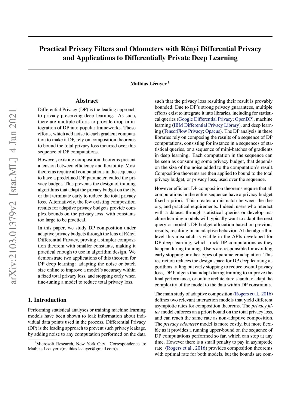 Differential Privacy (DP) is the leading approach to privacy preserving deep learning. As such, there are multiple efforts to provide drop-in integration of DP into popular frameworks. These efforts, which add noise to each gradient computation to make it DP, rely on composition theorems to bound the total privacy loss incurred over this sequence of DP computations. However, existing composition theorems present a tension between efficiency and flexibility. Most theorems require all computations in the sequence to have a predefined DP parameter, called the privacy budget. This prevents the design of training algorithms that adapt the privacy budget on the fly, or that terminate early to reduce the total privacy loss. Alternatively, the few existing composition results for adaptive privacy budgets provide complex bounds on the privacy loss, with constants too large to be practical. In this paper, we study DP composition under adaptive privacy budgets through the lens of R\ényi Differential Privacy, proving a simpler composition theorem with smaller constants, making it practical enough to use in algorithm design. We demonstrate two applications of this theorem for DP deep learning: adapting the noise or batch size online to improve a model's accuracy within a fixed total privacy loss, and stopping early when fine-tuning a model to reduce total privacy loss.