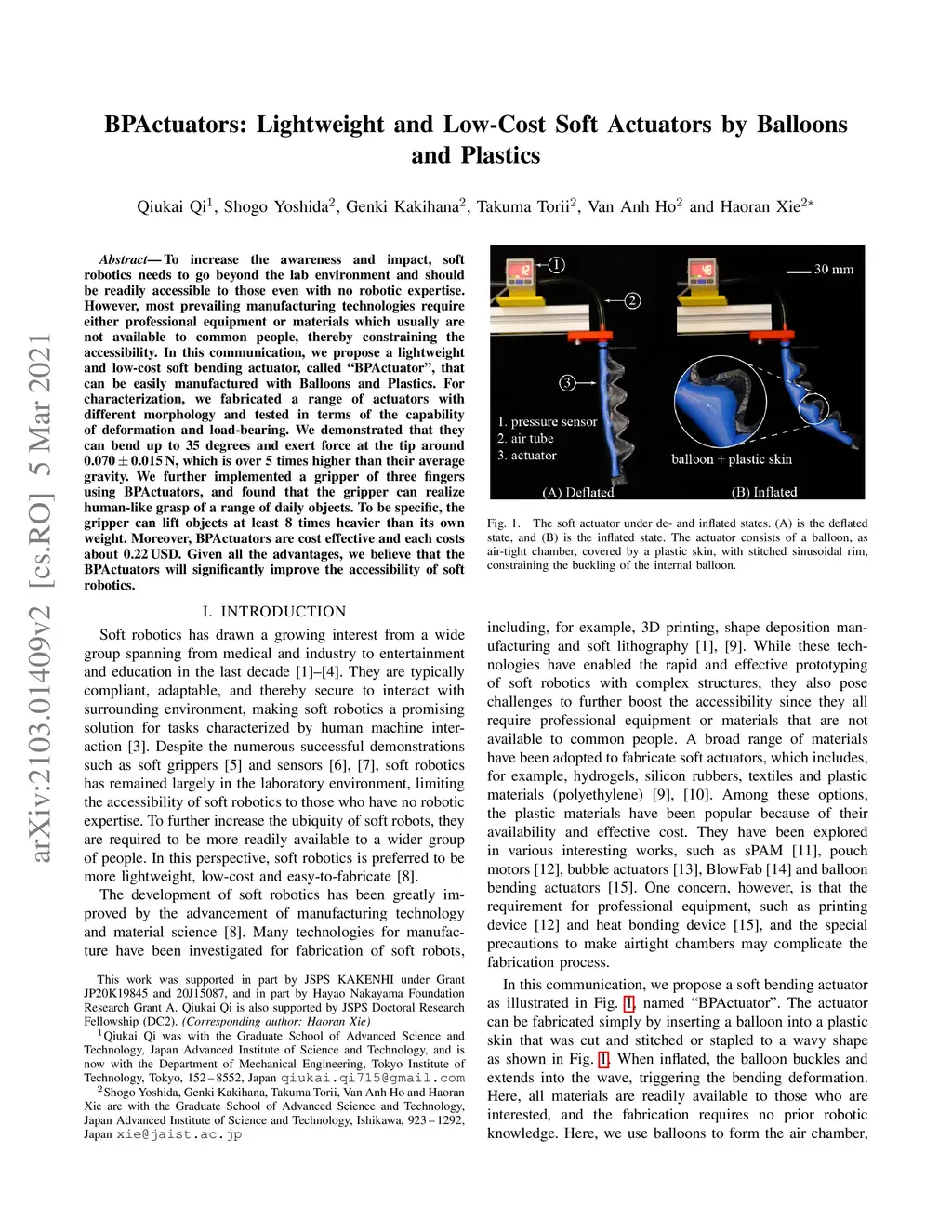 BPActuators: Lightweight and Low-Cost Soft Actuators by Balloons and