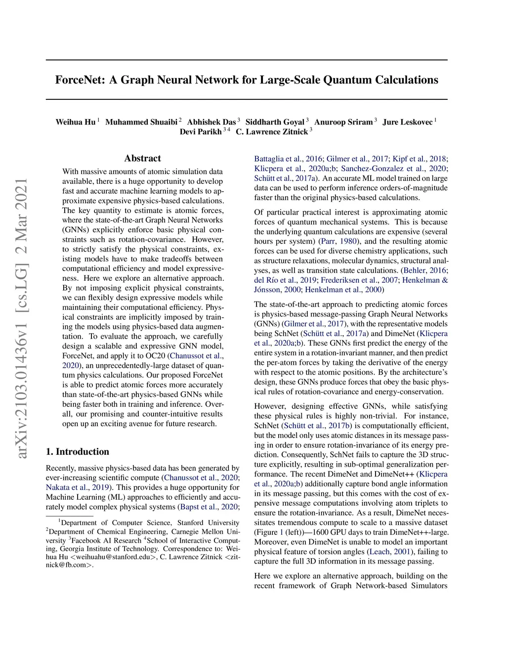 With massive amounts of atomic simulation data available, there is a huge opportunity to develop fast and accurate machine learning models to approximate expensive physics-based calculations. The key quantity to estimate is atomic forces, where the state-of-the-art Graph Neural Networks (GNNs) explicitly enforce basic physical constraints such as rotation-covariance. However, to strictly satisfy the physical constraints, existing models have to make tradeoffs between computational efficiency and model expressiveness. Here we explore an alternative approach. By not imposing explicit physical constraints, we can flexibly design expressive models while maintaining their computational efficiency. Physical constraints are implicitly imposed by training the models using physics-based data augmentation. To evaluate the approach, we carefully design a scalable and expressive GNN model, ForceNet, and apply it to OC20 (Chanussot et al., 2020), an unprecedentedly-large dataset of quantum physics calculations. Our proposed ForceNet is able to predict atomic forces more accurately than state-of-the-art physics-based GNNs while being faster both in training and inference. Overall, our promising and counter-intuitive results open up an exciting avenue for future research.